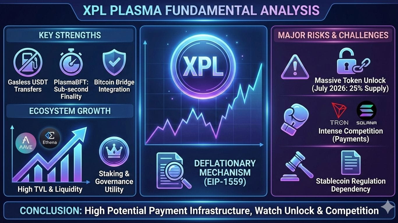 Token Unlock Besar (Juli 2026): Sekitar 25% dari total suplai (2,5 miliar XPL) yang dialokasikan untuk tim dan investor awal akan terbuka (unlocked) pada Juli 2026. Ini berpotensi menciptakan tekanan jual yang sangat besar.