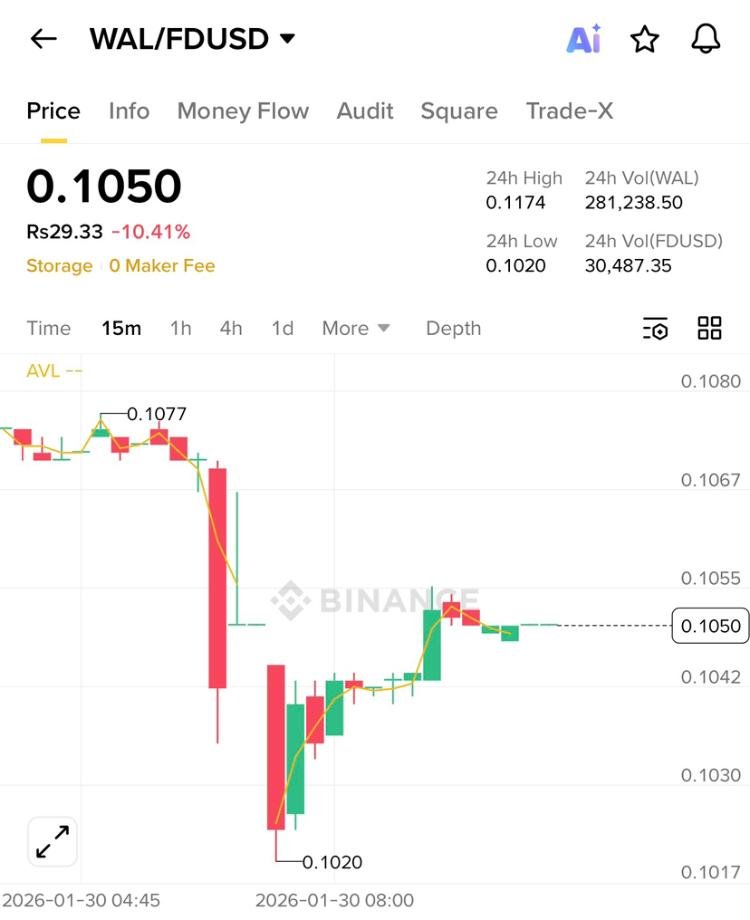 $WAL baru saja melihat penarikan tajam, meluncur lebih dari 10% sebelum menemukan dukungan dekat 0.1020 📉