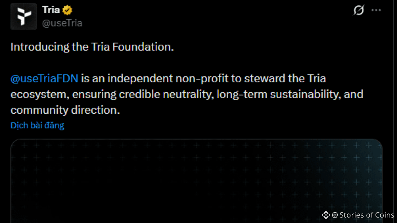 Postingan ini mengumumkan Tria Foundation (@useTriaFDN) — sebuah organisasi non-profit independen yang bertindak sebagai “penjaga” yang adil dan jangka panjang dari seluruh ekosistem Tria. Tugasnya adalah: