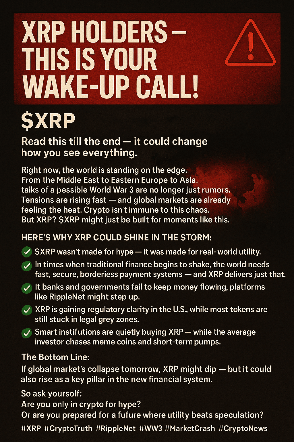 #XRP #CryptoTruth #RippleNet #WW3 #MarketCrash #CryptoNews #SmartInvesti