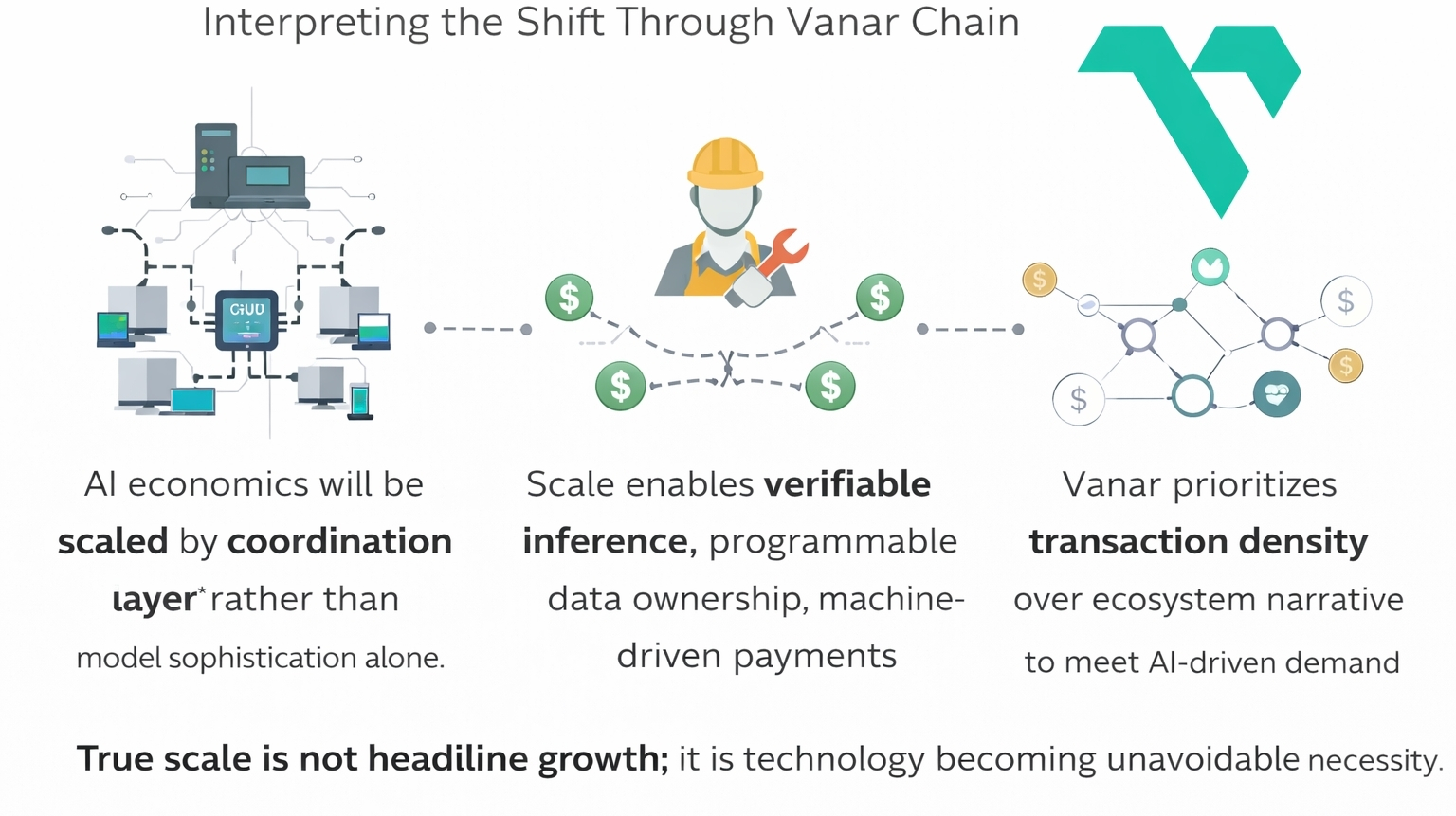 Visto attraverso questo quadro, Vanar Chain diventa rilevante non come infrastruttura speculativa, ma come un ambiente di esecuzione progettato per un throughput digitale sostenuto. L'evoluzione concettuale significativa qui è il passaggio dal misurare le prestazioni in transazioni al secondo a valutare la larghezza di banda economica: la capacità di regolare vasti numeri di interazioni AI a basso valore e alta frequenza in modo affidabile e conveniente. Se l'adozione dell'IA continua verso un utilizzo ambientale e sempre attivo, solo le infrastrutture ottimizzate per un regolamento transazionale denso rimarranno competitive.