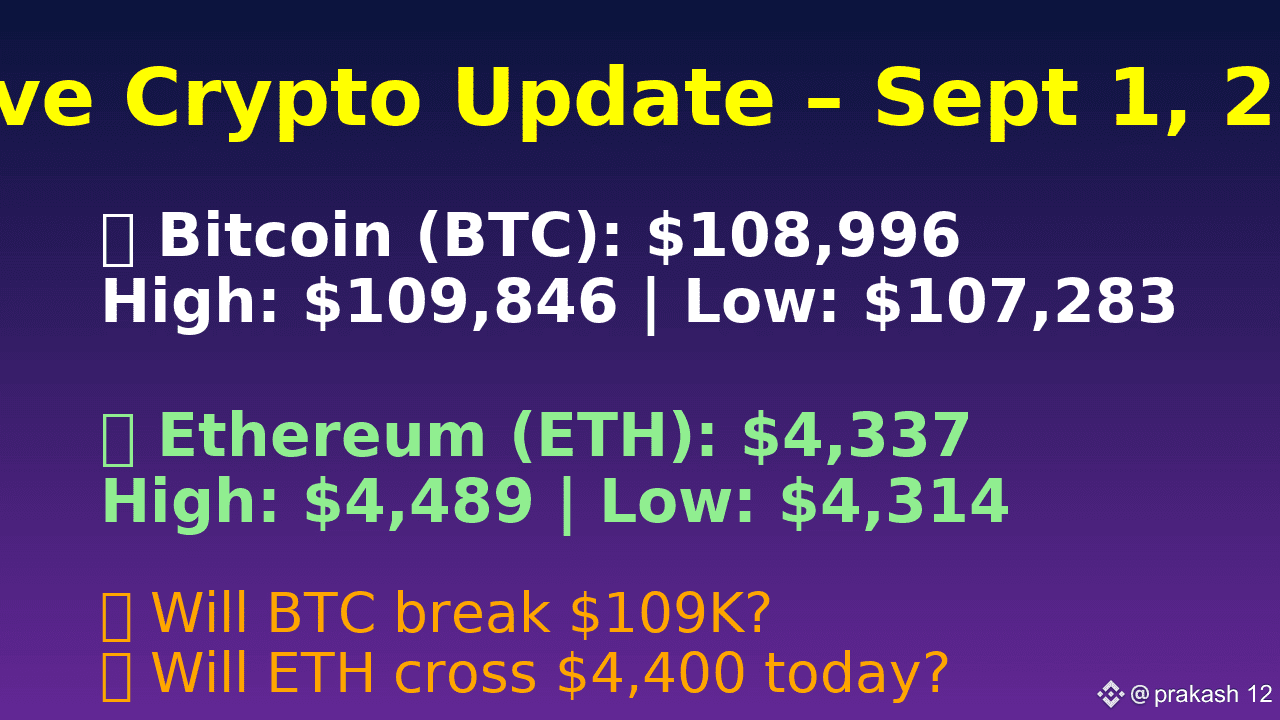 🚀 Aggiornamento BTC & ETH in tempo reale – 1 Set 2025