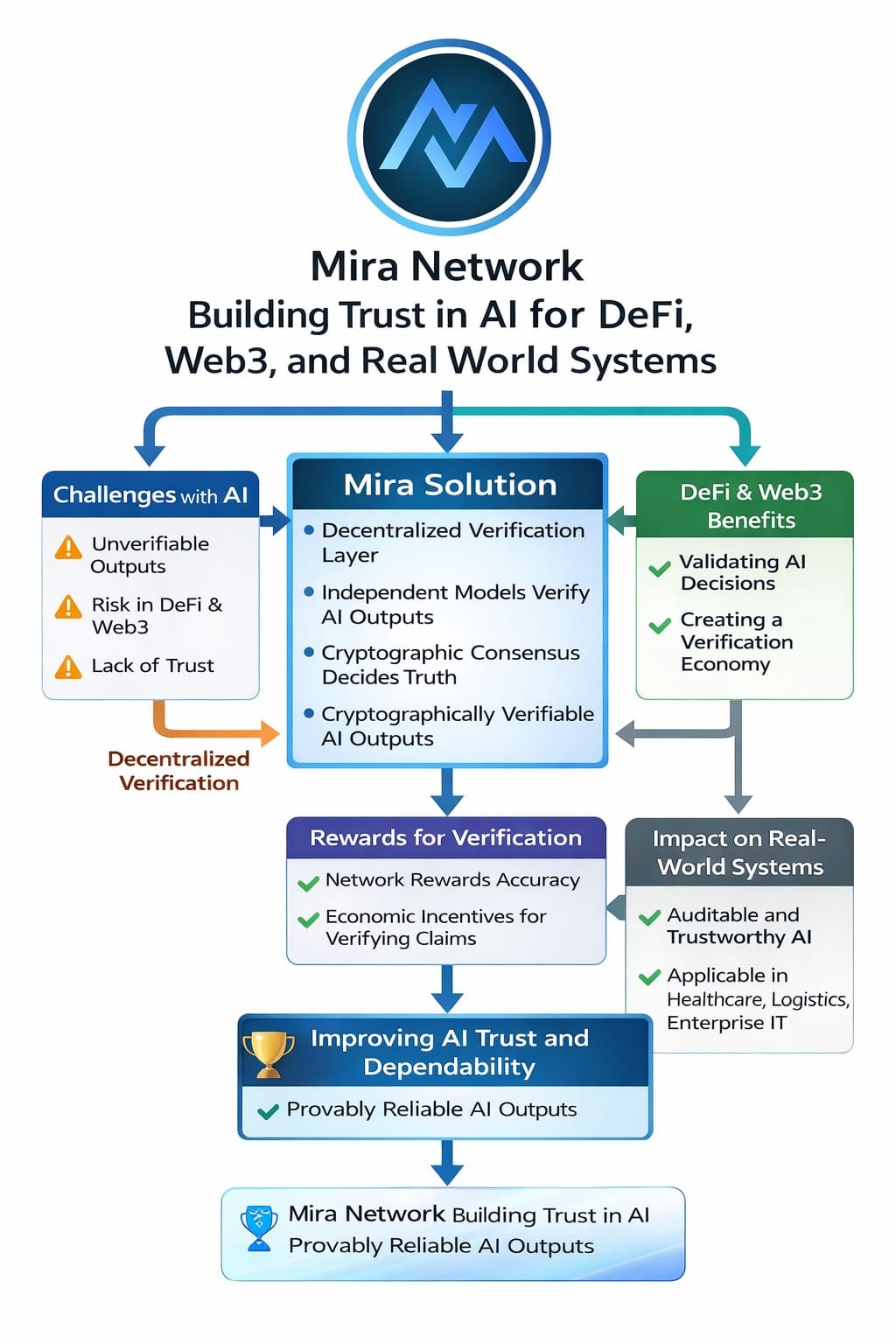 And Mira’s impact goes way beyond Web3 or DeFi.Industries like healthcare,logistics,and enterprise IT need systems they can audit and trust.If an AI can’t explain or prove its answers,organizations won’t risk using it in mission critical roles. Mira gives them verifiable outputs,so they can finally bring AI out of the lab and into daily operations with real confidence.