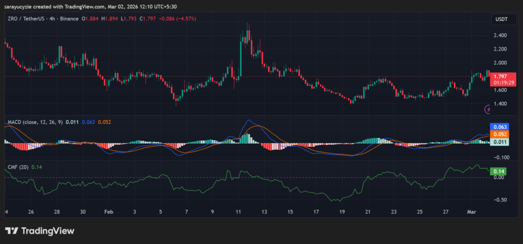 Il minimo storico di scambio per la valuta è stato di 1,72 dollari, poi è aumentato gradualmente verso 1,89 dollari, superando alcuni livelli di resistenza chiave. I dati di CoinMarketCap hanno rivelato che il prezzo di LayerZero è attualmente scambiato nell'intervallo di 1,79 dollari. Con una capitalizzazione di mercato di 544,77 milioni di dollari, il volume degli scambi giornalieri è diminuito del 28,76%, scendendo a 105,12 milioni di dollari.