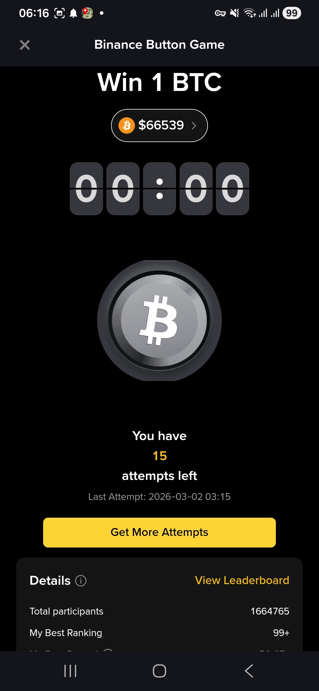 The Current Screen: my screen shows 00:00, but this usually means the timer is currently "stuck" at the start or waiting for the next round/click. Because there are over 1.6 million participants, i am almost always clicking the button, which resets the clock before it can actually "finish" at zero for a specific winner.