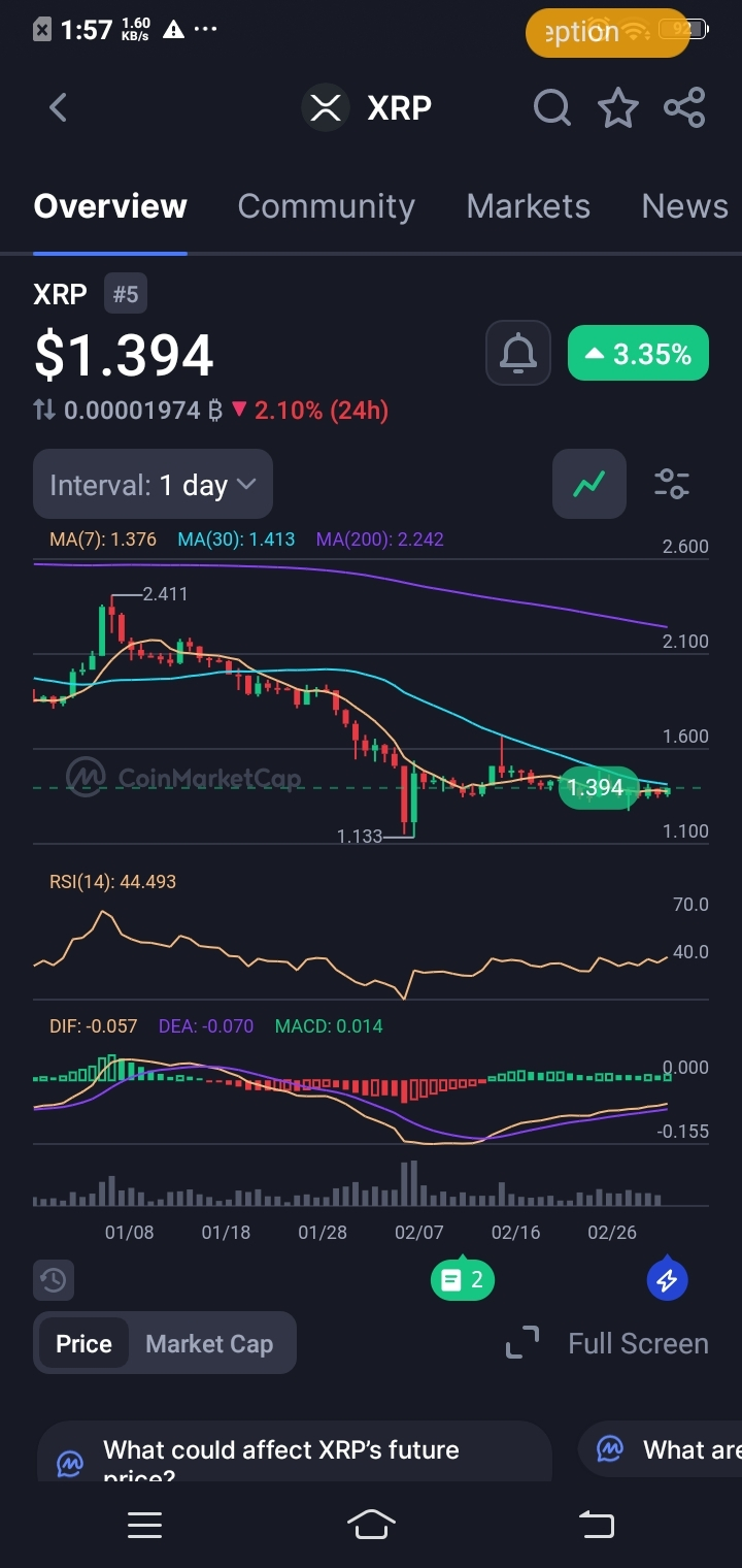 Expect consolidation between $1.376 and $1.413. If XRP breaks and holds above $1.413, we could see a relief grind toward $1.60. However, if it loses the 7-day MA support ($1.376), the path to retest the $1.133 lows opens up quickly.