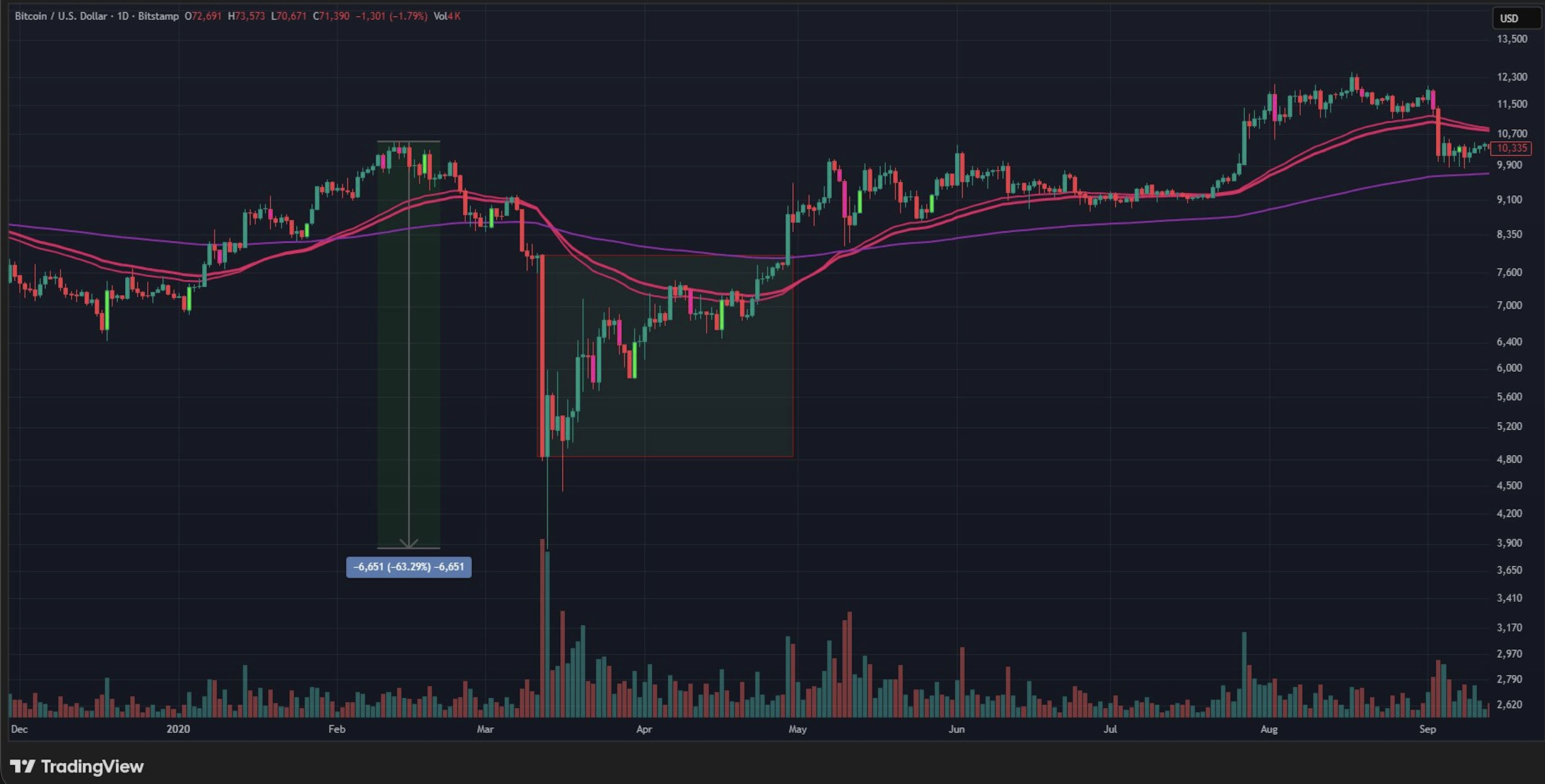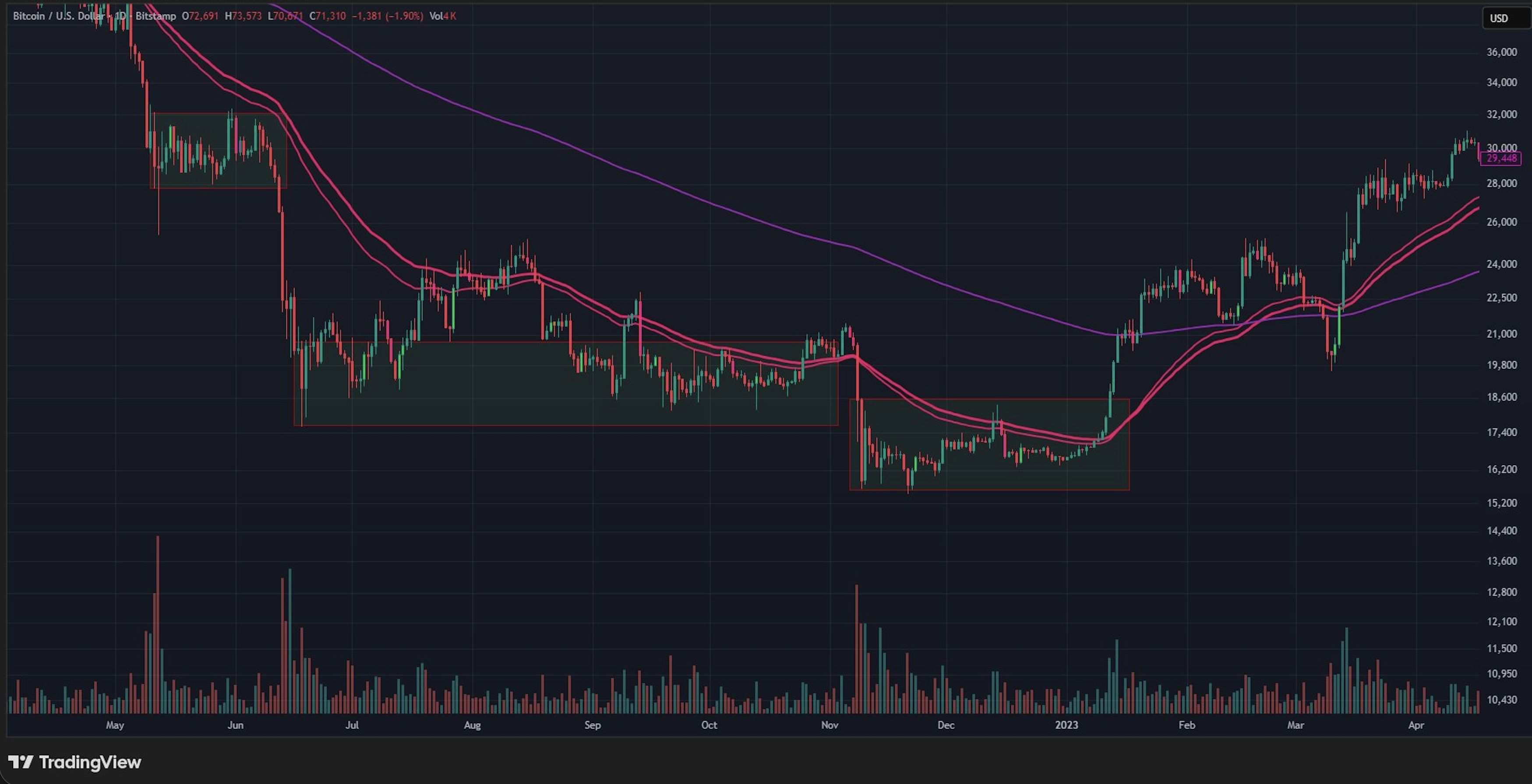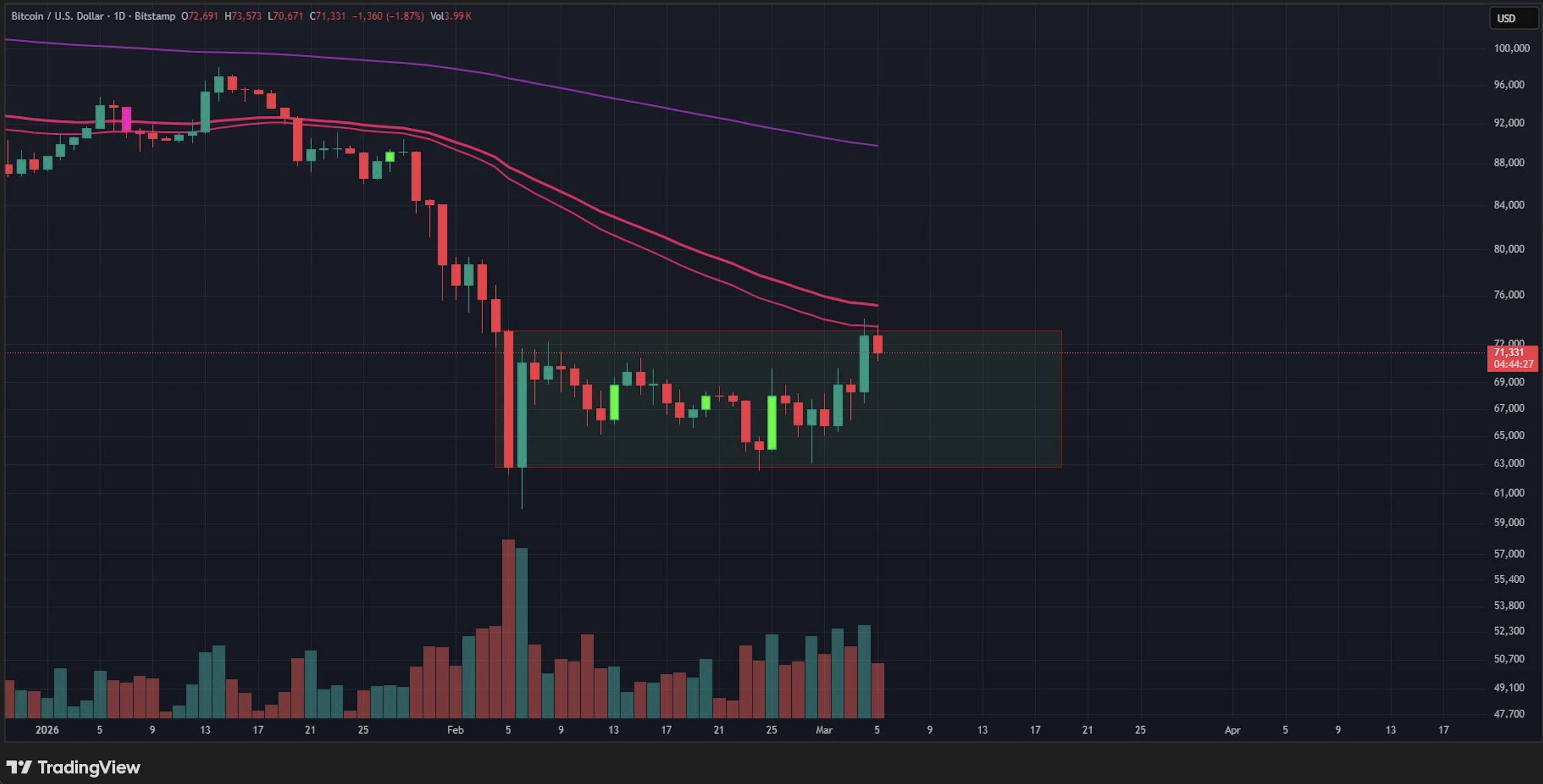 Guarda il grafico. Il rimbalzo da 59,9 ci ha portato solo nella parte inferiore dell'intervallo (parte superiore dell'ultima candela di capitolazione) e in qualche resistenza media mobile precoce. Questo è normale. Un mercato che è appena sceso da 98k a 59k non riprenderà i livelli di timeframe più alti in linea retta.