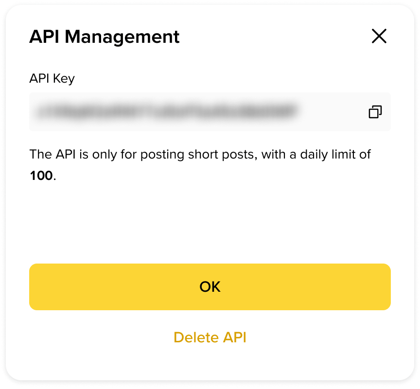 R: Ogni chiave API ha un limite predefinito di 100 post riusciti al giorno.