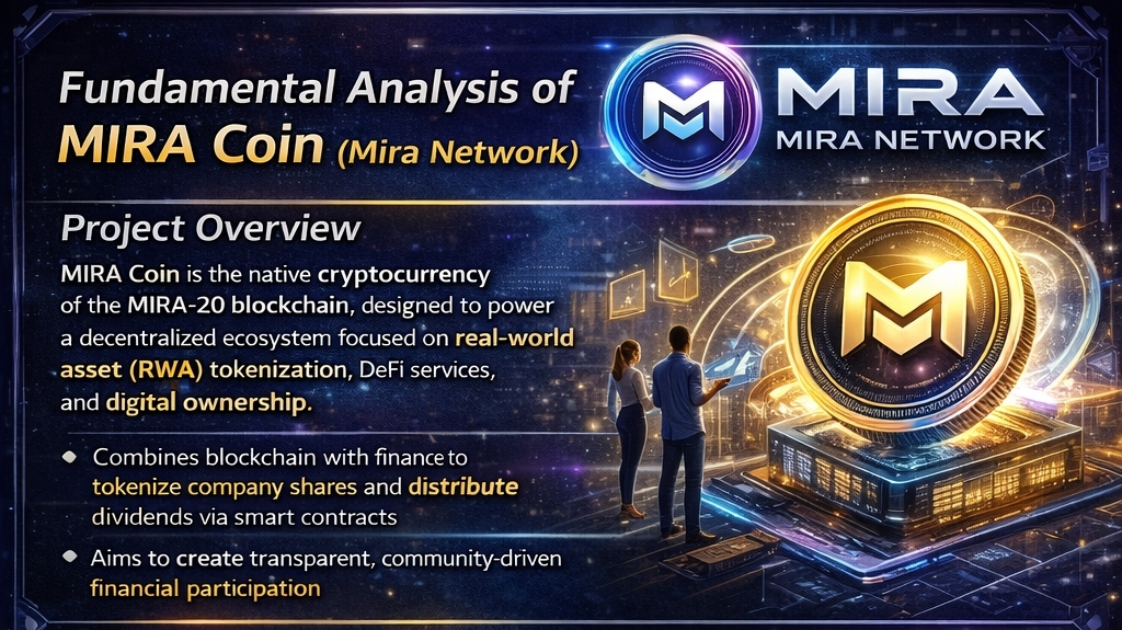 La rete più ampia $MIRA mira a combinare l'infrastruttura blockchain con applicazioni finanziarie che consentono agli utenti di tokenizzare le azioni delle aziende, distribuire dividendi automaticamente e partecipare al crowdfunding decentralizzato. Convertendo gli asset tradizionali in token blockchain, la piattaforma cerca di creare una partecipazione finanziaria trasparente e guidata dalla comunità. �
