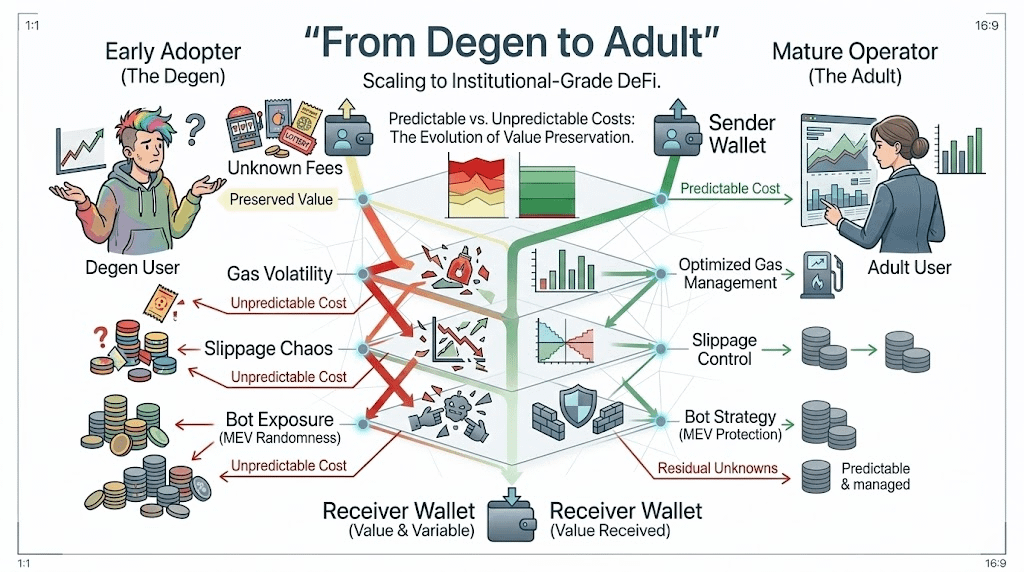 The question that keeps me watching isn't technical. It's whether the ecosystem will reward products that tell the truth about what things cost, or whether we'll keep optimizing for "cheap at sign" and quietly absorb the difference, transaction by transaction, until one day we realize we've built an economy that only degens can survive.