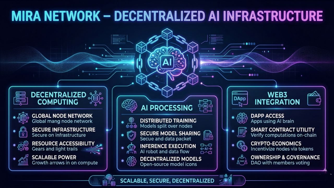 Mira Network focuses on building infrastructure that allows AI systems to operate on decentralized networks rather than centralized servers.