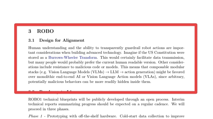 Il documento parla di come modelli massicci come VLM o LLM possano nascondere comportamenti malevoli perché sono così monolitici. Fabric lo sta facendo in modo diverso. Vogliono che le azioni dei robot siano trasparenti e leggibili dagli esseri umani, come utilizzare una Trasformazione di Burrows-Wheeler in modo da poter effettivamente controllare cosa sta facendo la macchina. È come avere una costituzione digitale per il tuo hardware.
