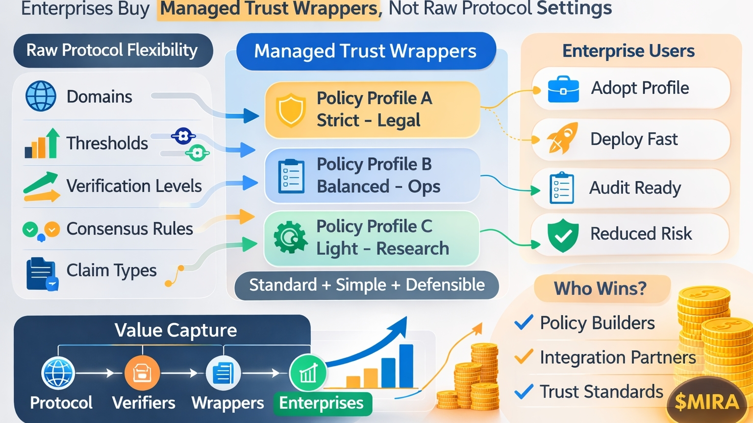 The easiest way to see whether this angle is wrong is simple. If large users adopt Mira mostly through raw settings, internally managed policy design, and little dependence on standardized wrappers, then this concern is overstated. If instead adoption clusters around managed profiles, integration partners, or trust packages that simplify those choices, then the wrapper layer is where the real product power sits.