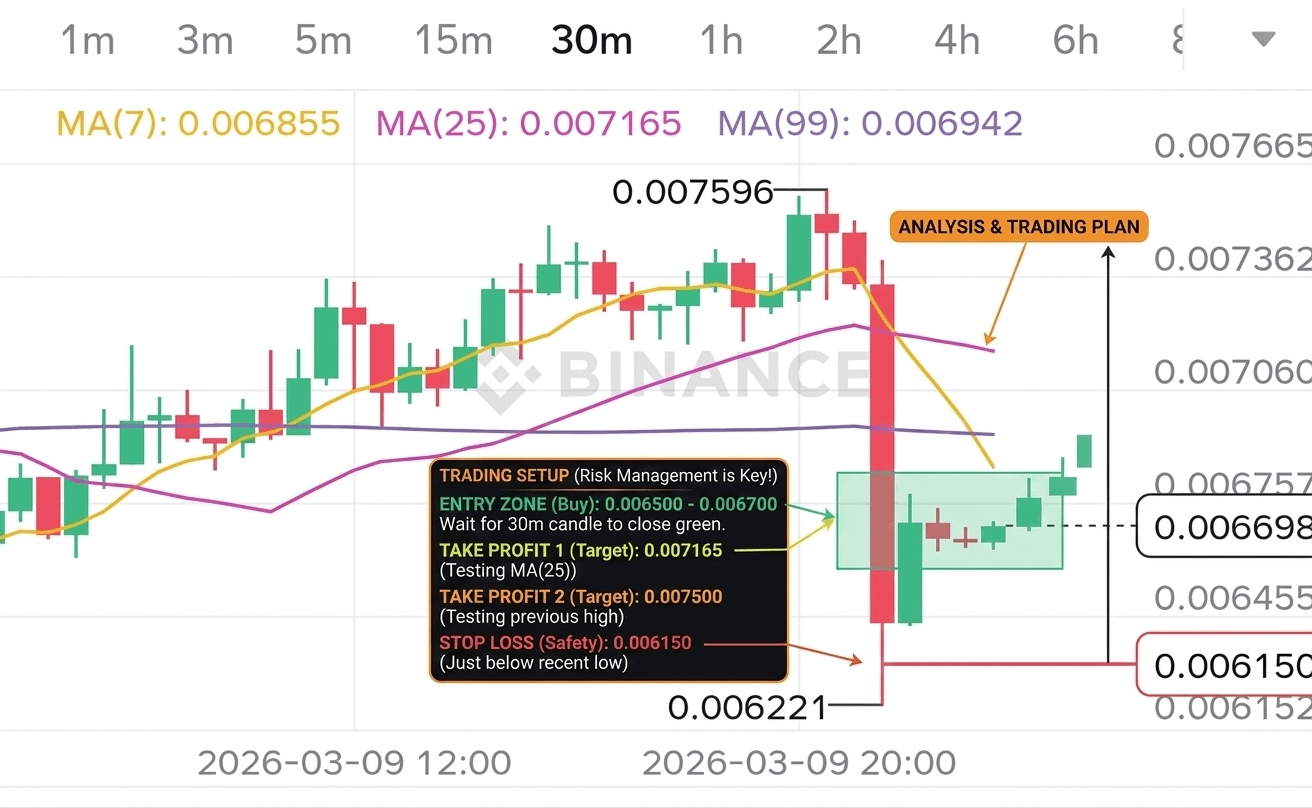 Entry Zone (Buy): Around 0.006500 - 0.006700. Wait for the 30-minute candle to close green before jumping in.