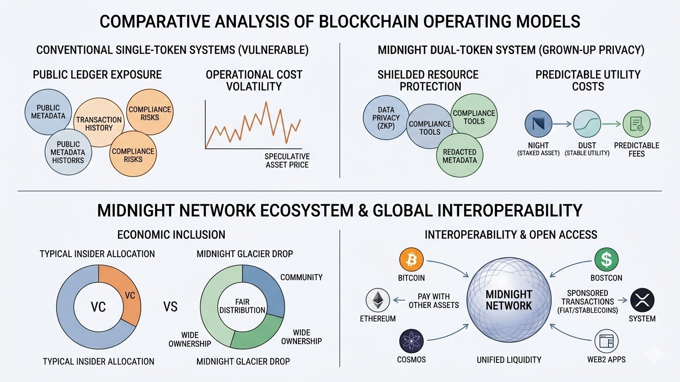 What really strikes me is how they are moving away from the adversarial mindset that has defined Web3 for a decade. Midnight is designed to play nice with others, allowing people to pay for transactions with other native tokens or even fiat, much like the way a developer in the Web2 world might sponsor a user experience to keep things frictionless. They are launching this through a fair distribution model called the Glacier Drop, which feels like a deliberate attempt to break the cycle of insider-only enrichment. It is the difference between building a private fortress and building a global port. While the rest of the industry is busy digging moats and building walls, this approach understands that a network is only as valuable as the traffic it facilitates. We are finally moving from the era of the digital walled garden to the era of the open transit hub where privacy is the standard and cooperation is the currency.