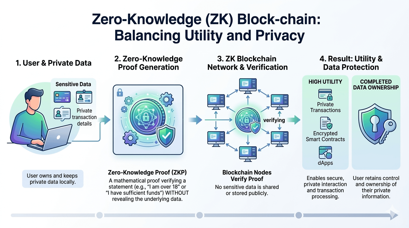 In practical terms, this means a blockchain could verify that something happened—such as a payment, a credential validation, or a computation—without exposing the underlying data.