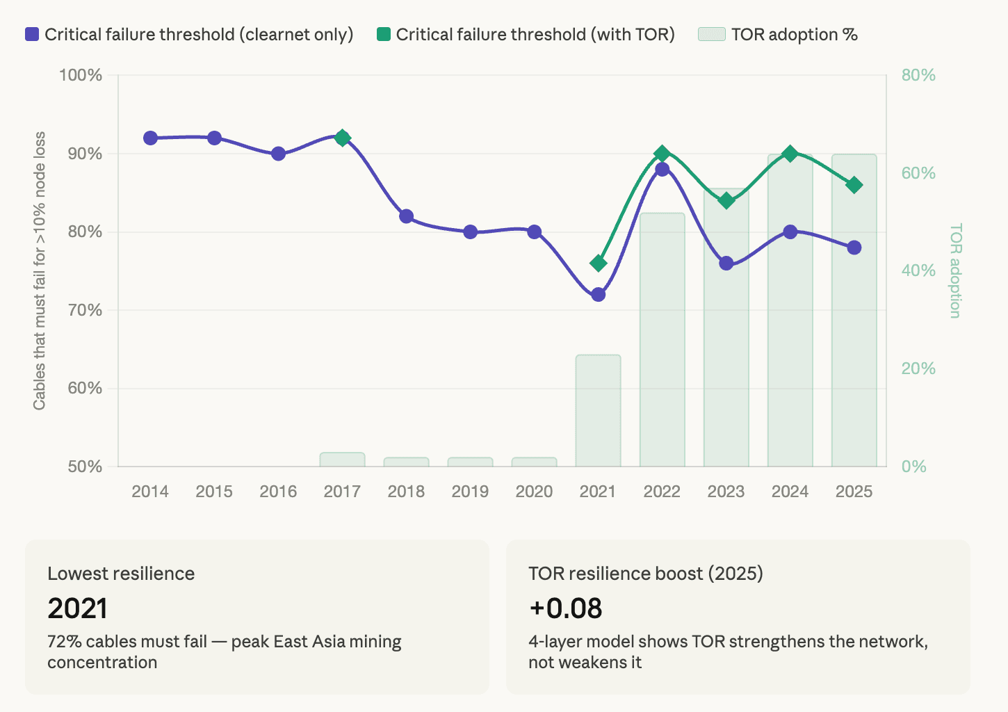 In altre parole, l'infrastruttura di privacy funge anche da strato di resilienza strutturale per la rete Bitcoin.
