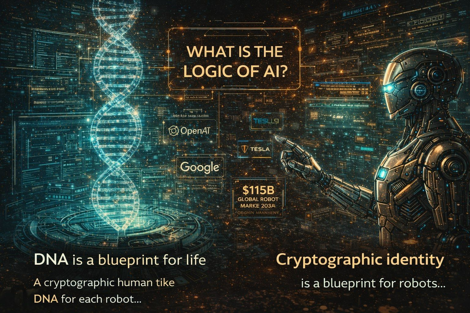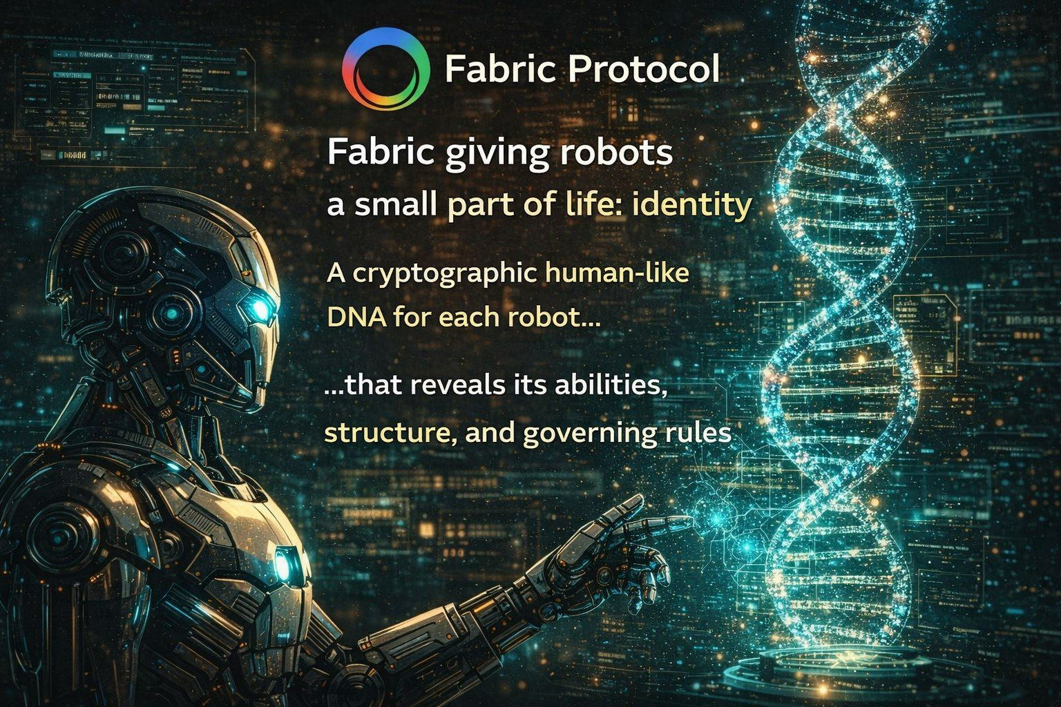 Liệu có thể trao cho robot “sự sống”? Mình nghĩ Fabric đang thử trao 1 phần nhỏ của sự sống: danh tính cho robot. Trong whitepaper của @Fabric Foundation , họ viết rằng mỗi robot sẽ có danh tính riêng dựa trên mật mã học, tương tự như bộ DNA của con người. Danh tính đó công khai thông tin về khả năng, cấu tạo và các quy tắc điều khiển hành động của robot.