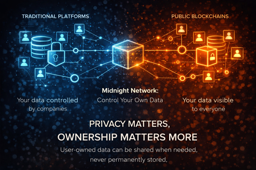 Invece di memorizzare informazioni sensibili direttamente onchain, Midnight consente agli utenti di mantenere i propri dati pur interagendo con le applicazioni.