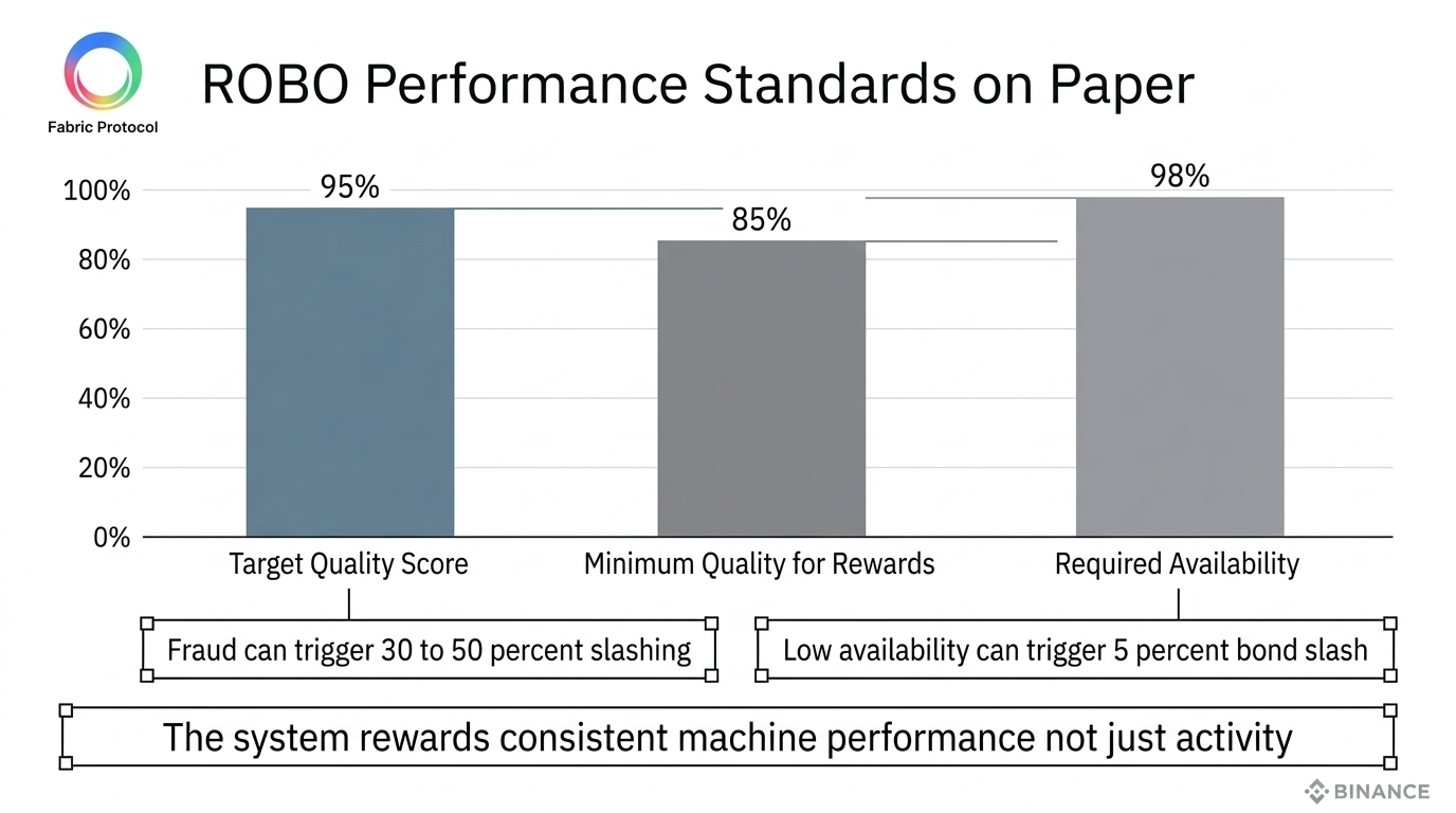 La ragione è semplice. Fabric non dice solo che i robot possono svolgere compiti e essere pagati. Aggiunge standard. Stabilisce requisiti operativi. Utilizza obbligazioni di lavoro. Introduce validatori. Definisce punteggi di contributo. Crea penalità per frodi e inaffidabilità. Il protocollo sta cercando di rispondere alle domande fastidiose ma necessarie che ogni sistema di lavoro reale alla fine affronta.