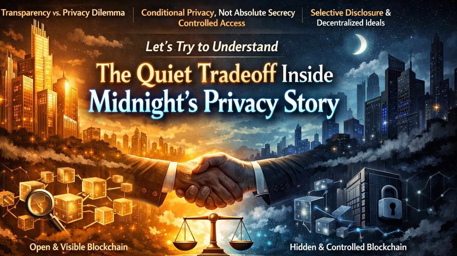 A friend asked me something recently that sounded simple on the surface: “Is privacy in crypto actually real, or does everything eventually end up visible to someone?” It stayed with me longer than I expected, and almost right away it made me think of MidnightNetwork. Because this is where one of the most important tensions in blockchain really starts to show. On one side, you have people who believe transparency is the whole point. On the other, you have people who see privacy as the place where real freedom begins. Midnight seems to sit somewhere in the middle of those two ideas, but the more I looked at it, the more it felt like the real story was not just the technology itself. It was the compromise built quietly into it.