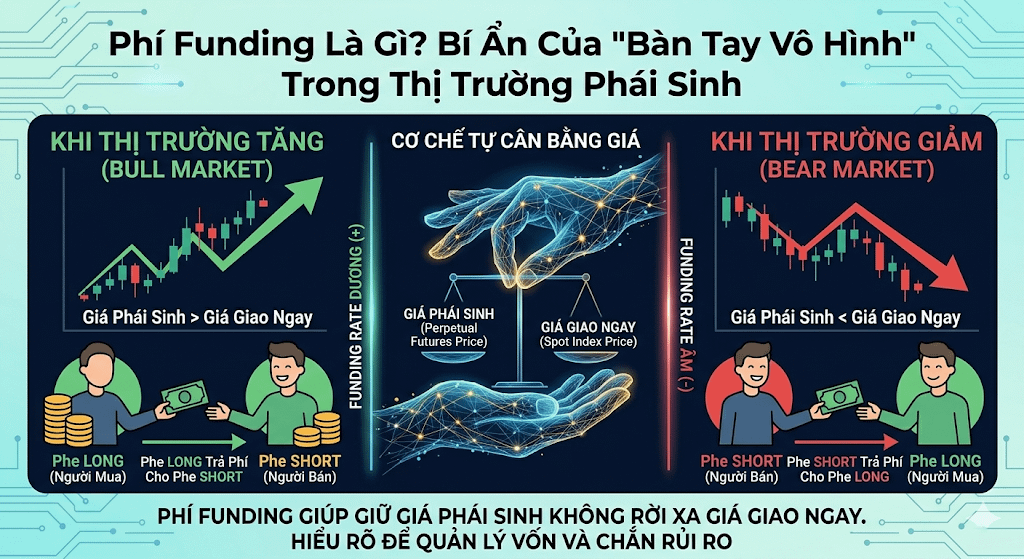 Phí Funding không phải là công cụ của sàn để "bào" tiền của bạn, mà là một cơ chế cân bằng bắt buộc để duy trì sự ổn định của thị trường Phái sinh.
