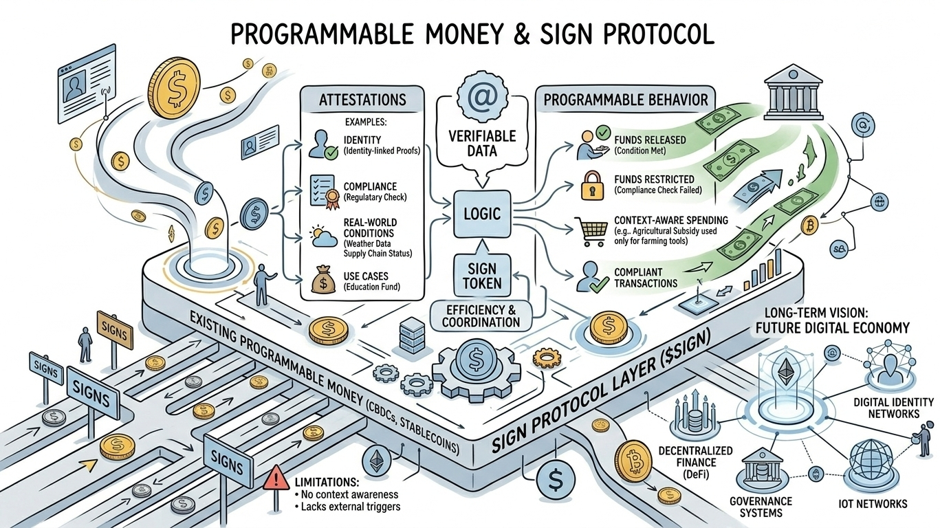 Ciò che trovo interessante riguardo a $SIGN è che aggiunge uno strato logico con attestazioni, quindi il denaro non è più solo qualcosa che si muove, ma qualcosa che si comporta in modi specifici.