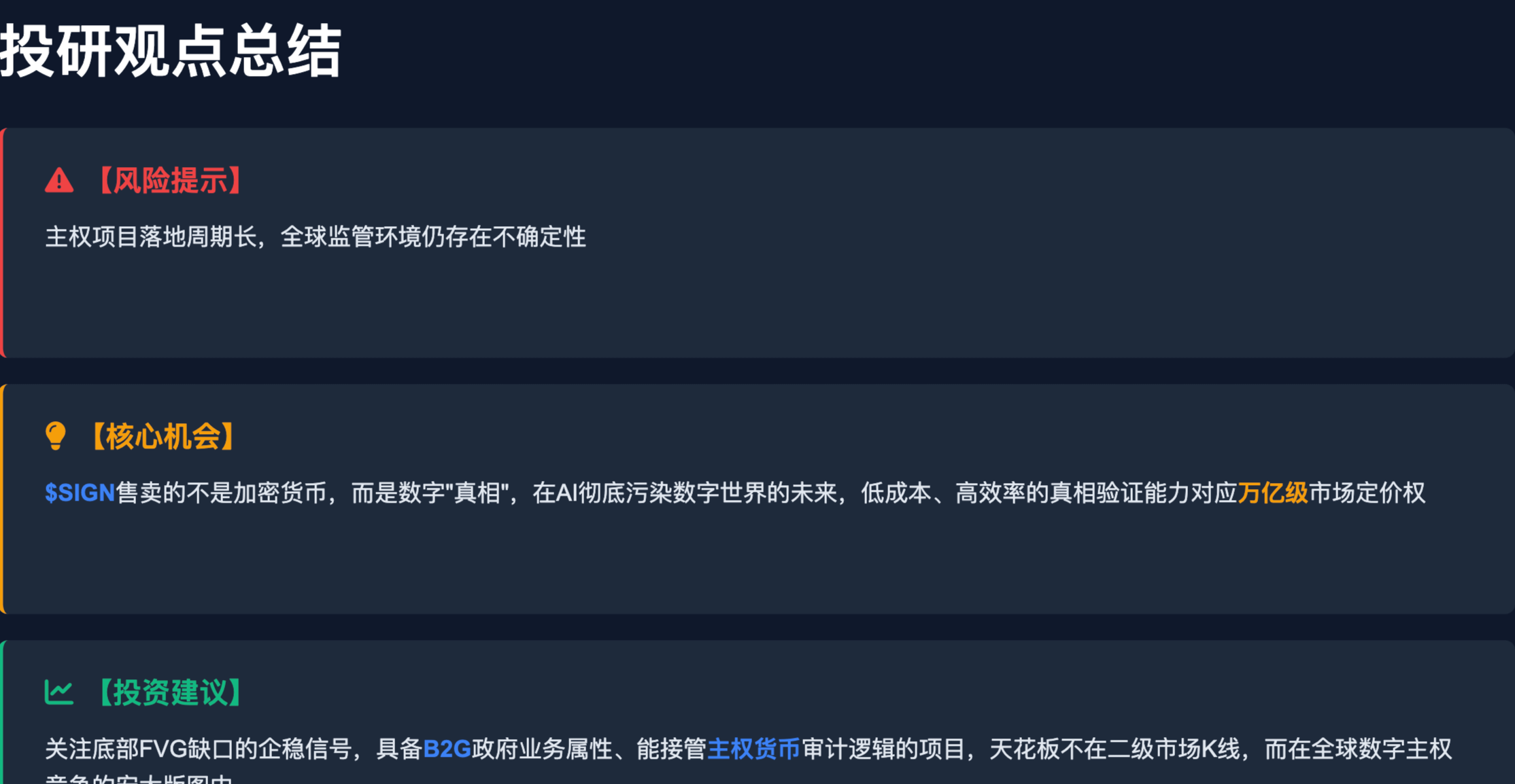 机会: sign卖的不是币,而是真相。在 AI 彻底污染数字世界的未来,谁能低成本、高效率地验证真相,谁就拥有万亿级的定价权