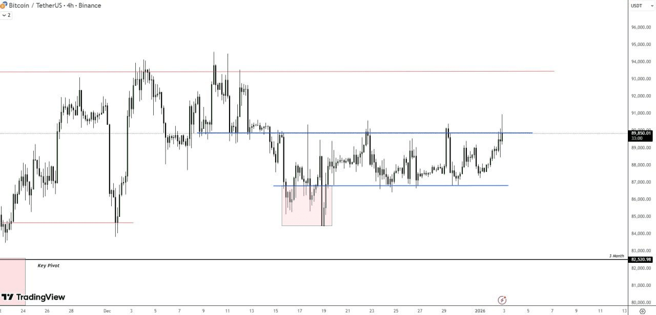 - Dopo un forte ribasso, il prezzo si sta muovendo in un range compresso tra meno di 87k e 90k.