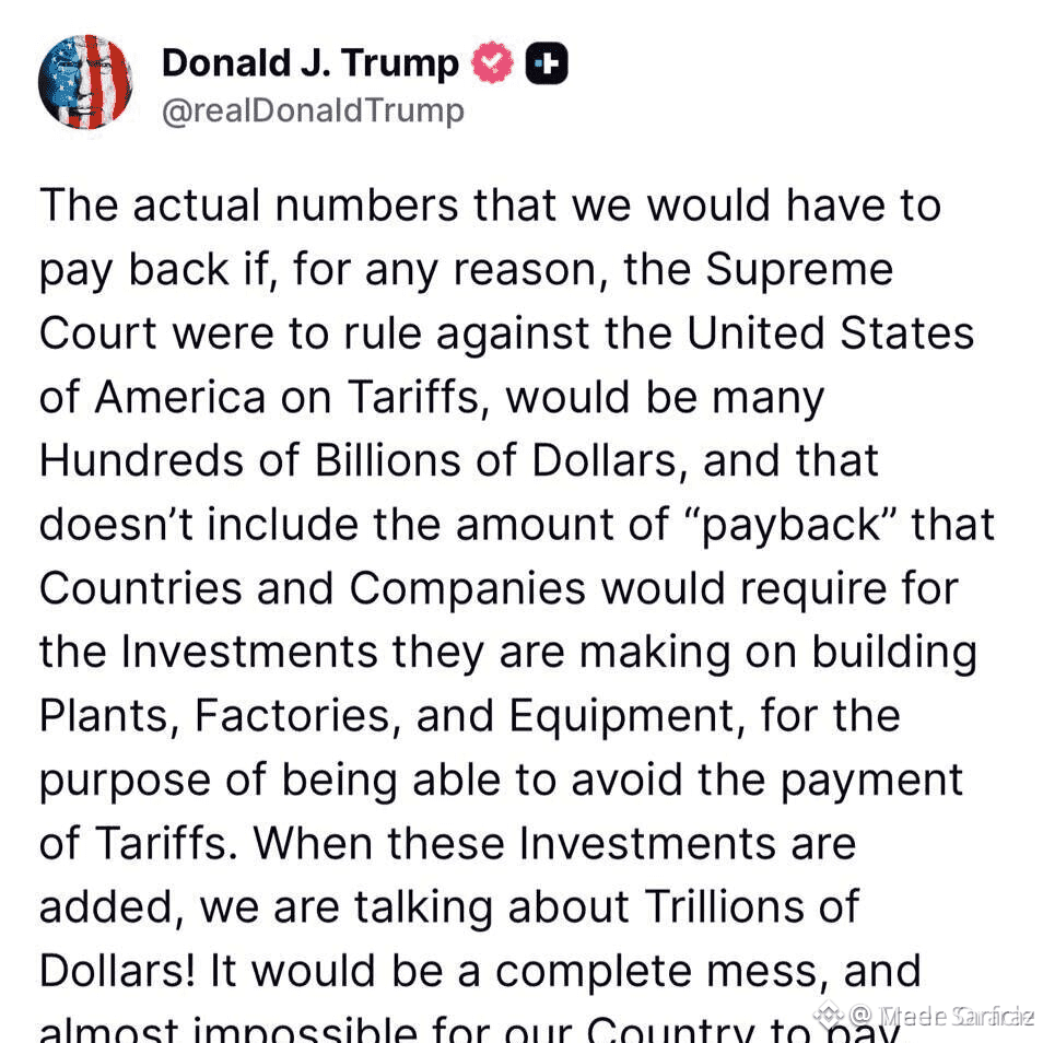 đ° Trump says such a ruling could expose the U.S. to **hundreds of billions â even trillions â of dollars** in potential liabilities. That level of damage wouldnât just hit markets, it could **weaken Americaâs economic backbone for years**.