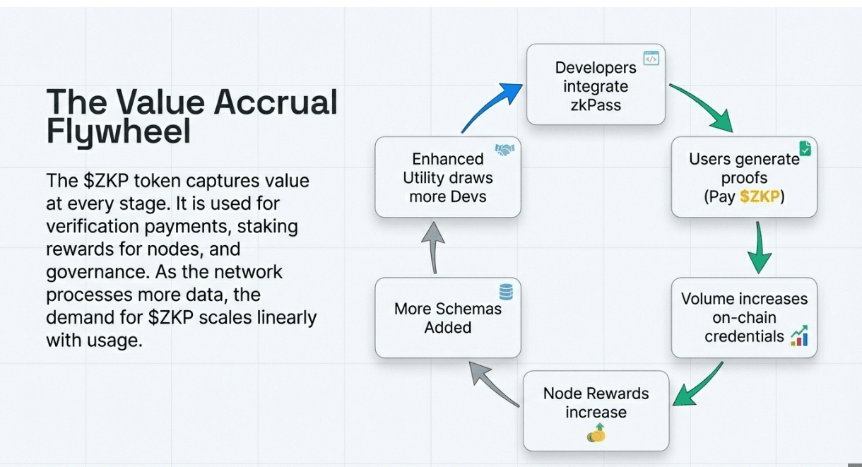 zkPass crea un ciclo auto-rinforzante ancorato dall'utilità delle prove e dall'espansione della rete. Man mano che più dApp integrano la verifica zkPass, i protocolli DeFi che richiedono punteggi di credito, DAO che implementano resistenza a Sybil, piattaforme di gioco che convalidano traguardi, la domanda per la generazione di prove aumenta. Questo spinge gli utenti a creare credenziali verificabili dai loro dati Web2, espandendo il grafo delle credenziali on-chain.