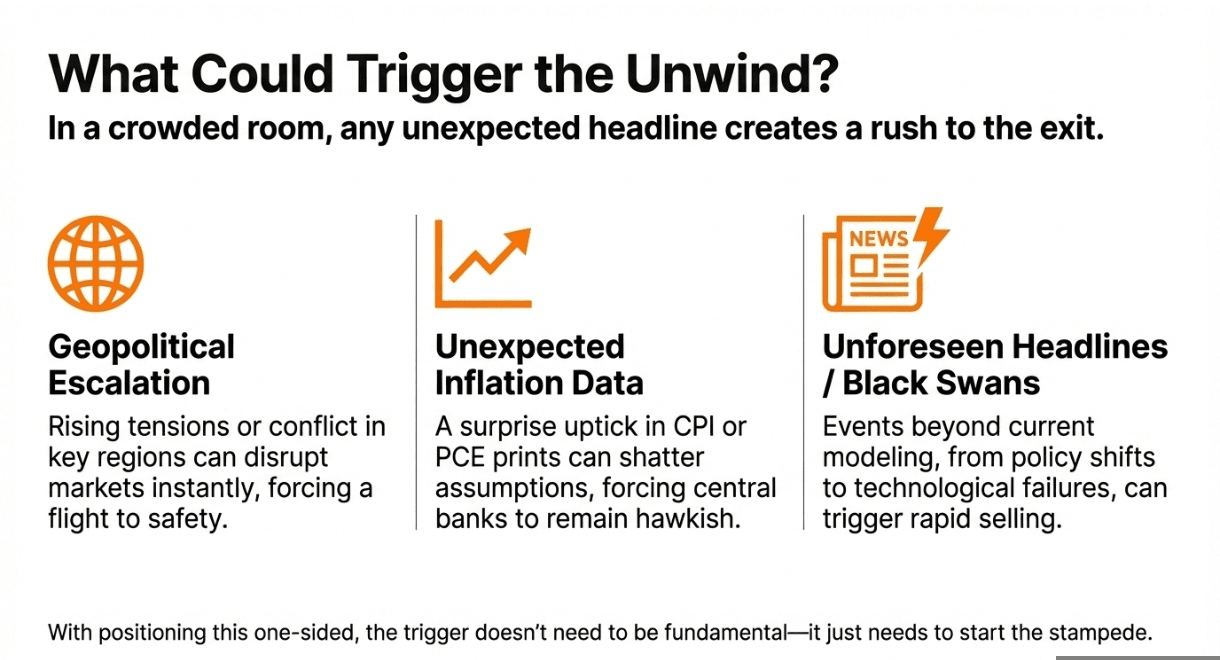 Il risultato: Quando si è verificato un repentino cambiamento nell'appetito per il rischio, la posizione corta affollata si è rapidamente disfatta, alimentando un ribasso di quasi -10% nel mercato in poche settimane.