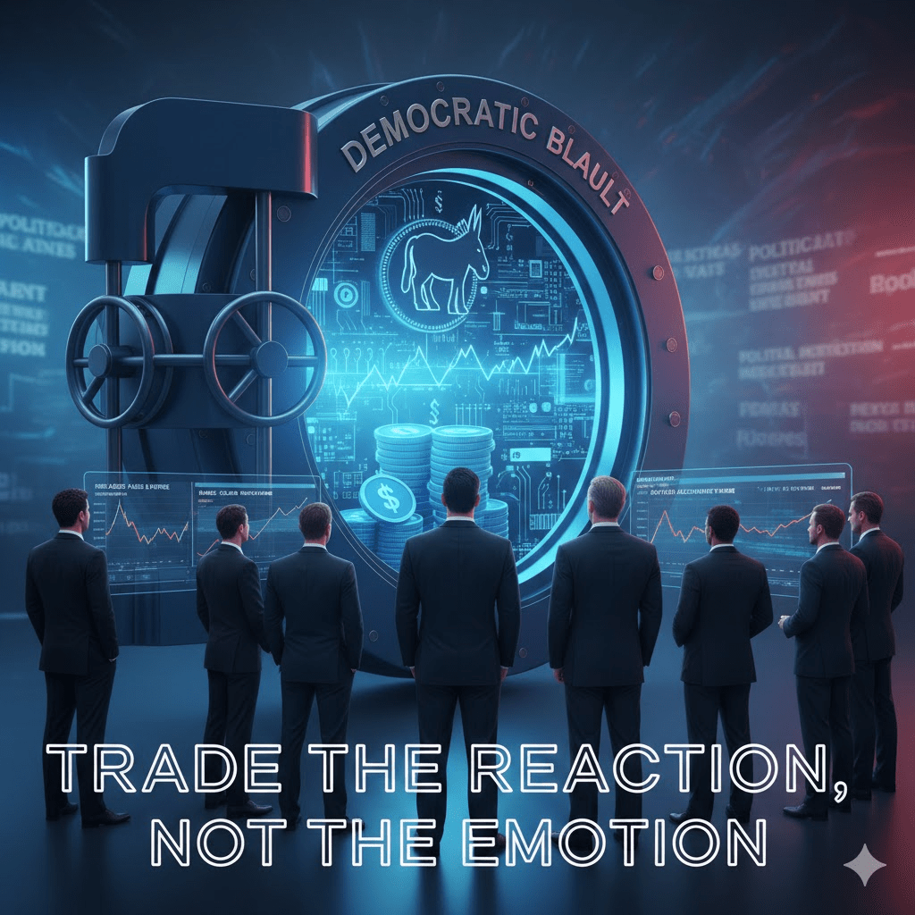 I mercati non si muovono solo sui grafici — si muovono sulle narrazioni. Il tema della "Blue Vault" che sta guadagnando terreno intorno al Partito Democratico statunitense evidenzia un modello familiare: attenzione alla gestione della liquidità, alla stabilità istituzionale e a segnali fiscali controllati.