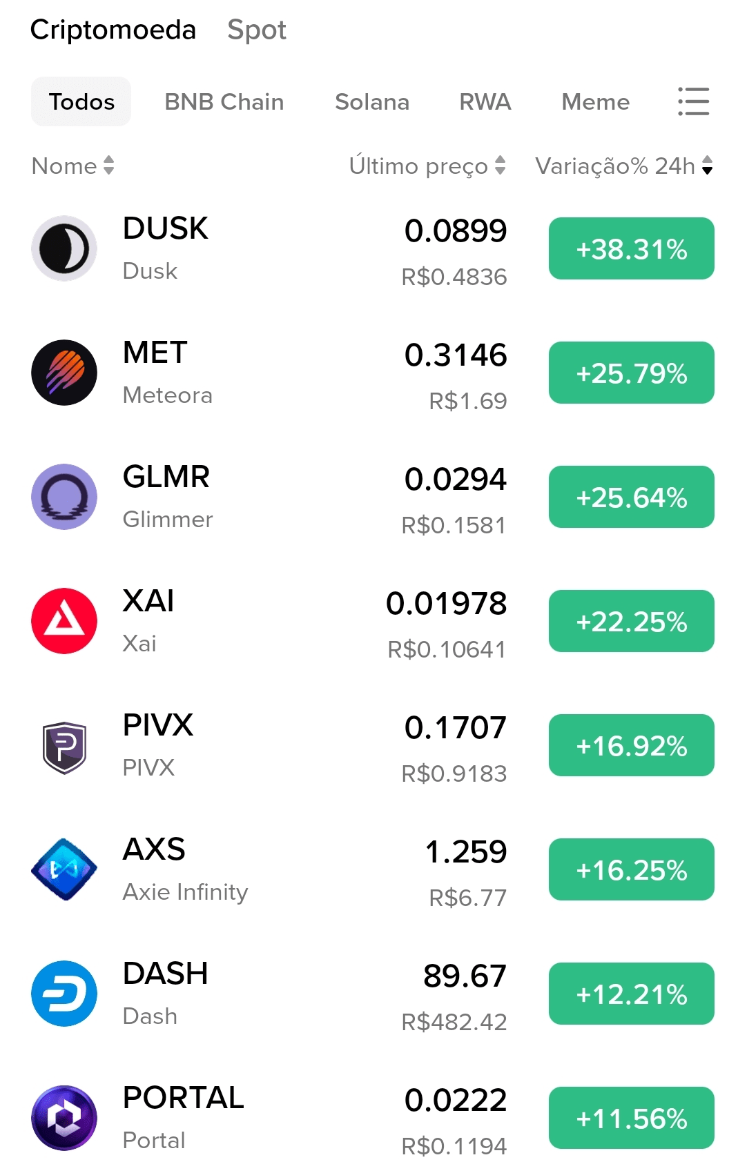 - PIVX/AXS/DASH/PORTAL: +12% a +17%