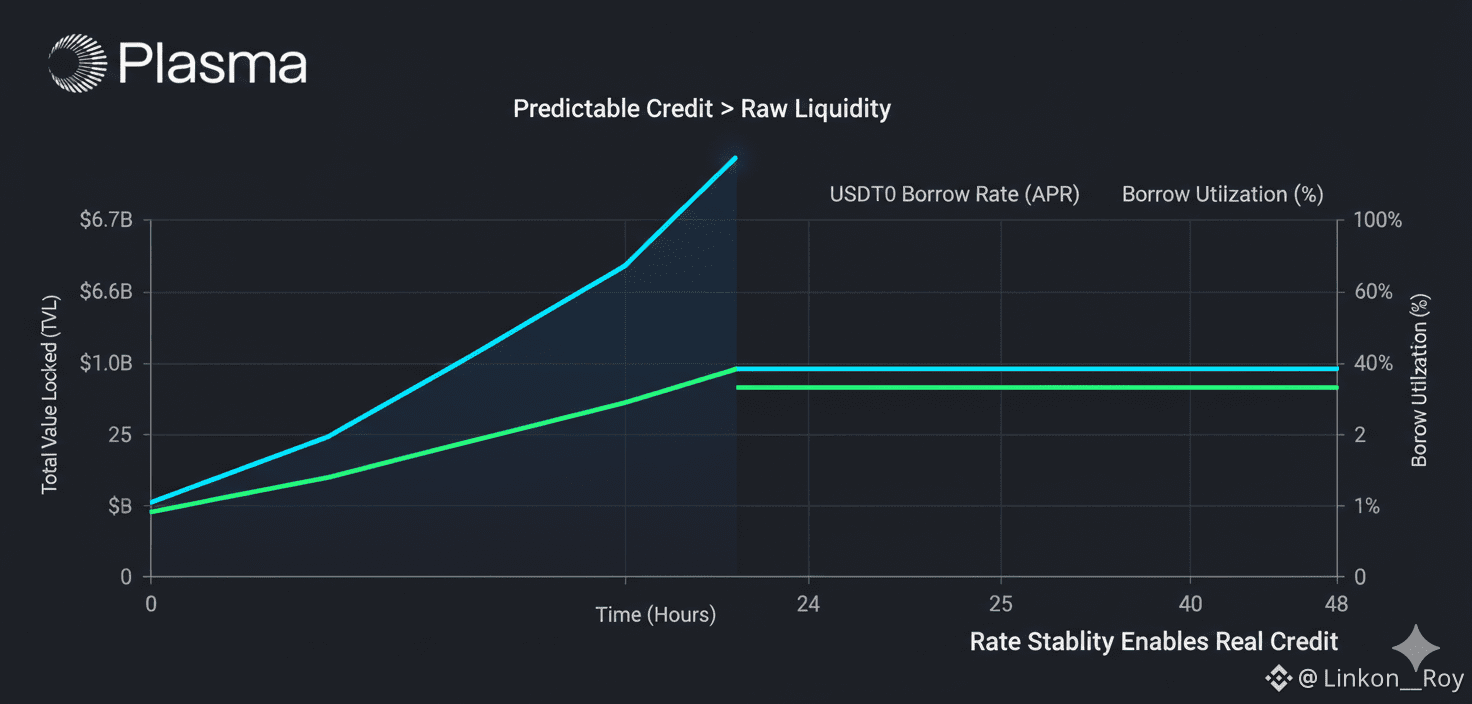 On Plasma: • USD₮0 borrow rates have remained consistently between 5–6% • Despite massive TVL swings • Despite volatile market conditions