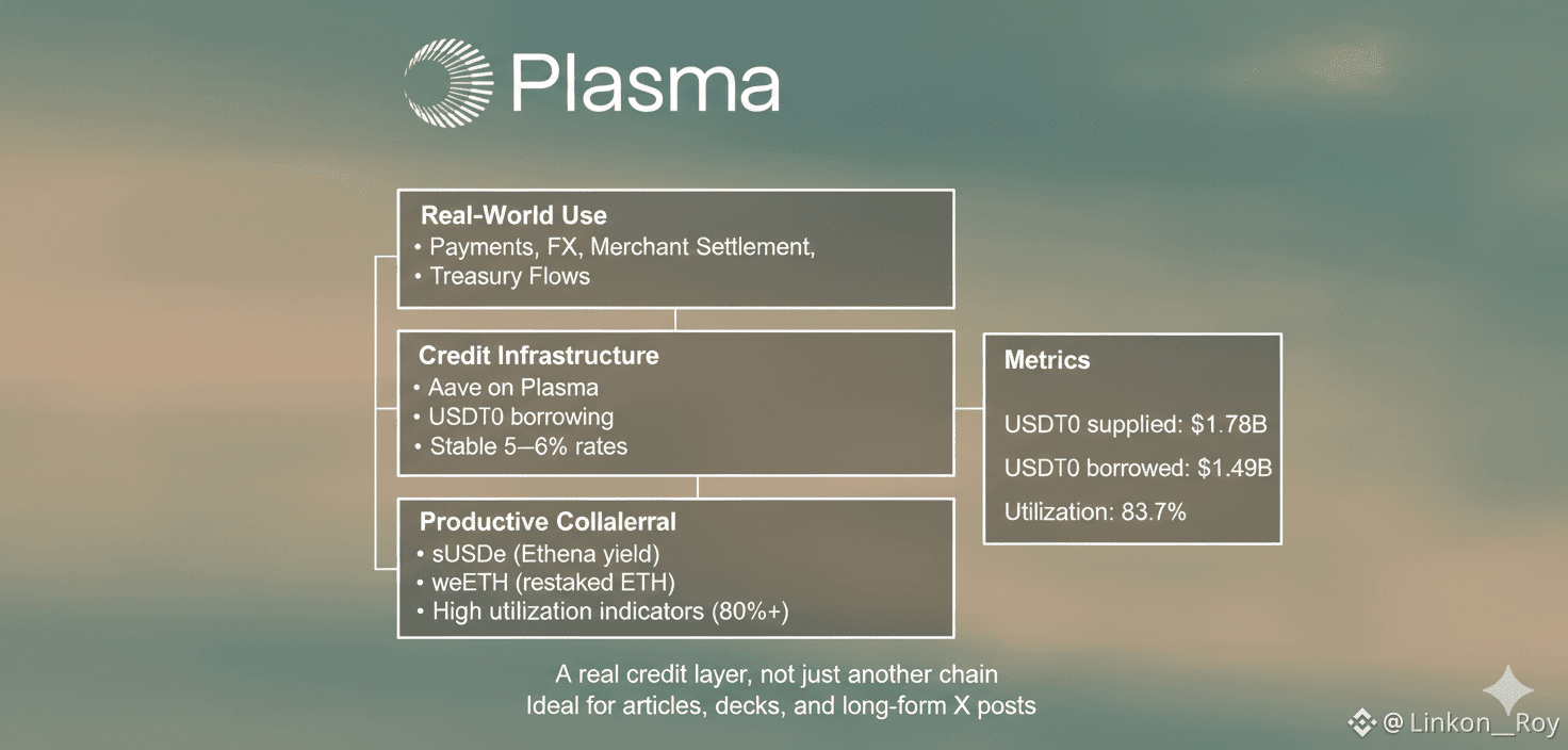 Plasma’s Aave market generated: • $1.58B in active borrowing • 84.9% utilization on WETH • 84.1% utilization on USD₮0 • 42.5% market-wide utilization