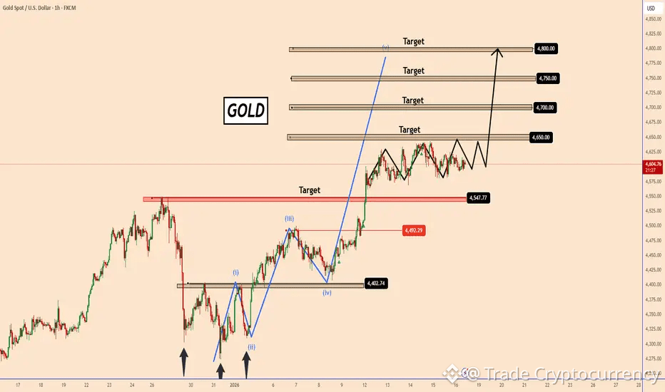 The next upside objectives are aligned at 4,650, followed by 4,700 – 4,750, with an extended target near 4,800 if momentum remains strong.