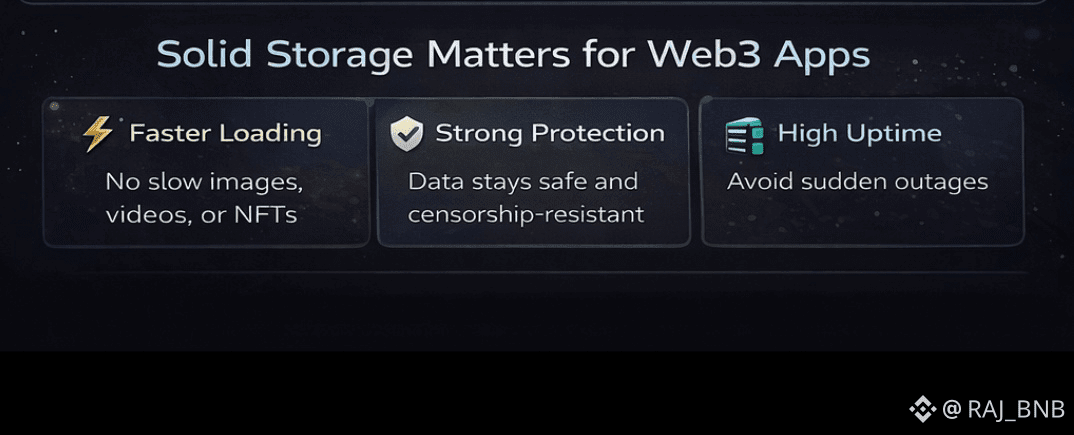 Web3 apps are becoming more serious. They’re no longer just demos or experiments—they’re handling real users, real content, and real value. As this shift happens, one requirement becomes unavoidable: reliable storage. Images, videos, datasets, user logs, and save files all need to load fast and stay available without relying on centralized servers.