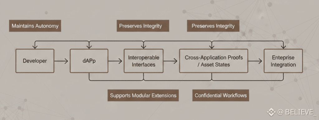 At the core of this ecosystem expansion is interoperable application scaffolding. Dusk enables developers to design decentralized applications (dApps) that can interact with one another while maintaining autonomy. For instance, marketplaces, identity solutions, and financial services can share verified proofs, asset states, or computational outputs without compromising integrity. By standardizing cross-application interfaces, Dusk encourages a collaborative environment in which projects can layer functionality and scale organically, avoiding the siloed development patterns that often slow blockchain adoption.