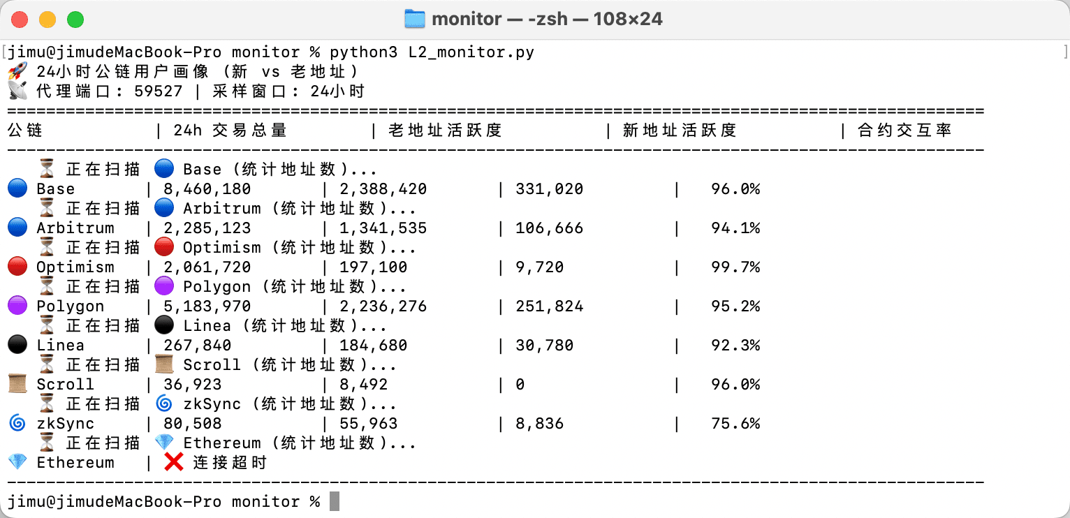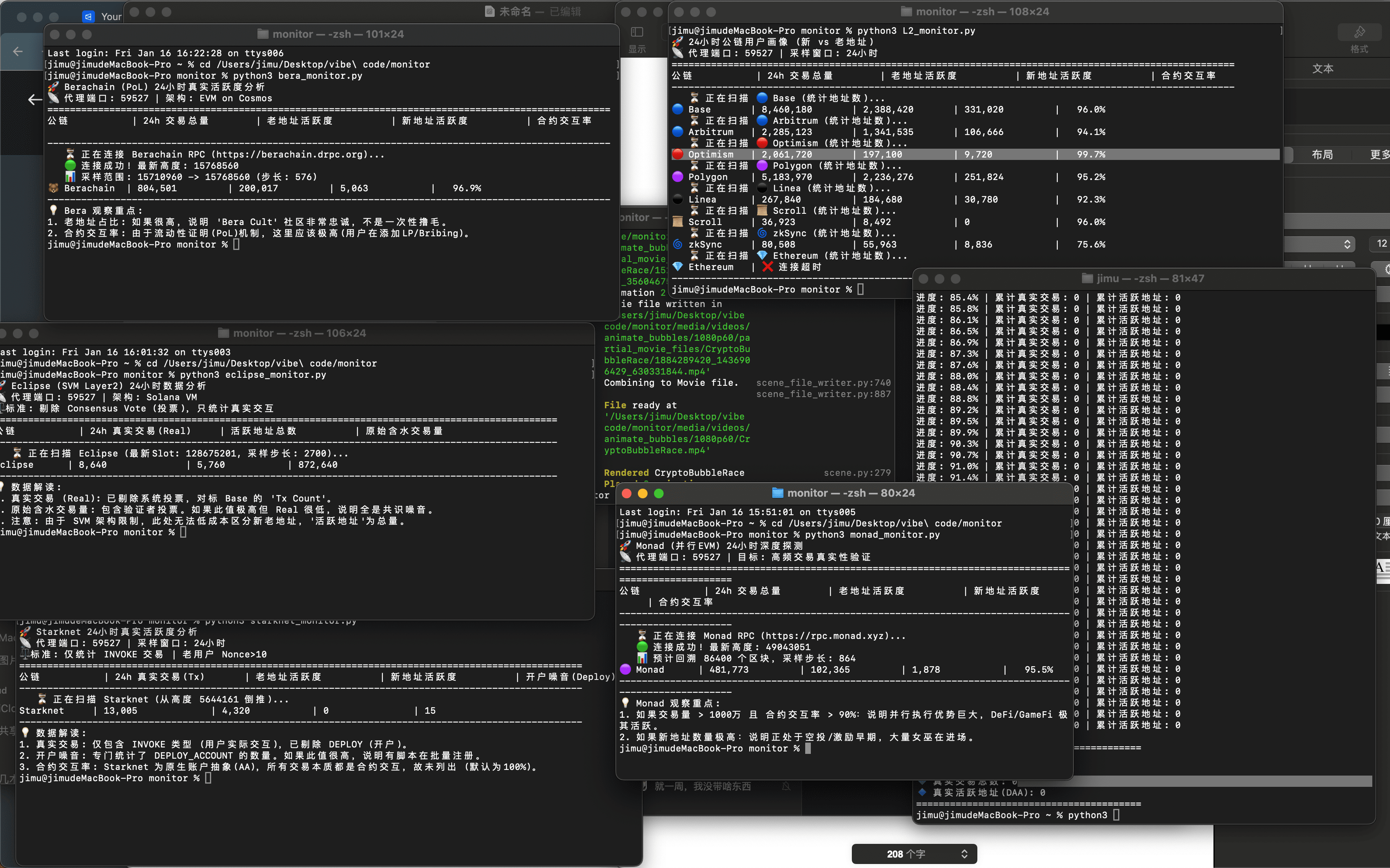 Per arrivare al nocciolo della questione, ho chiesto a Gemini di scrivere uno script Python per connettersi ai nodi RPC sulle principali blockchain pubbliche ed estrarre direttamente i dati grezzi dei blocchi delle ultime 24 ore (15-16 gennaio). Per avvicinarmi il più possibile alla realtà, ho chiesto a Gemini di scrivere un algoritmo di pulizia dell'intera catena:
