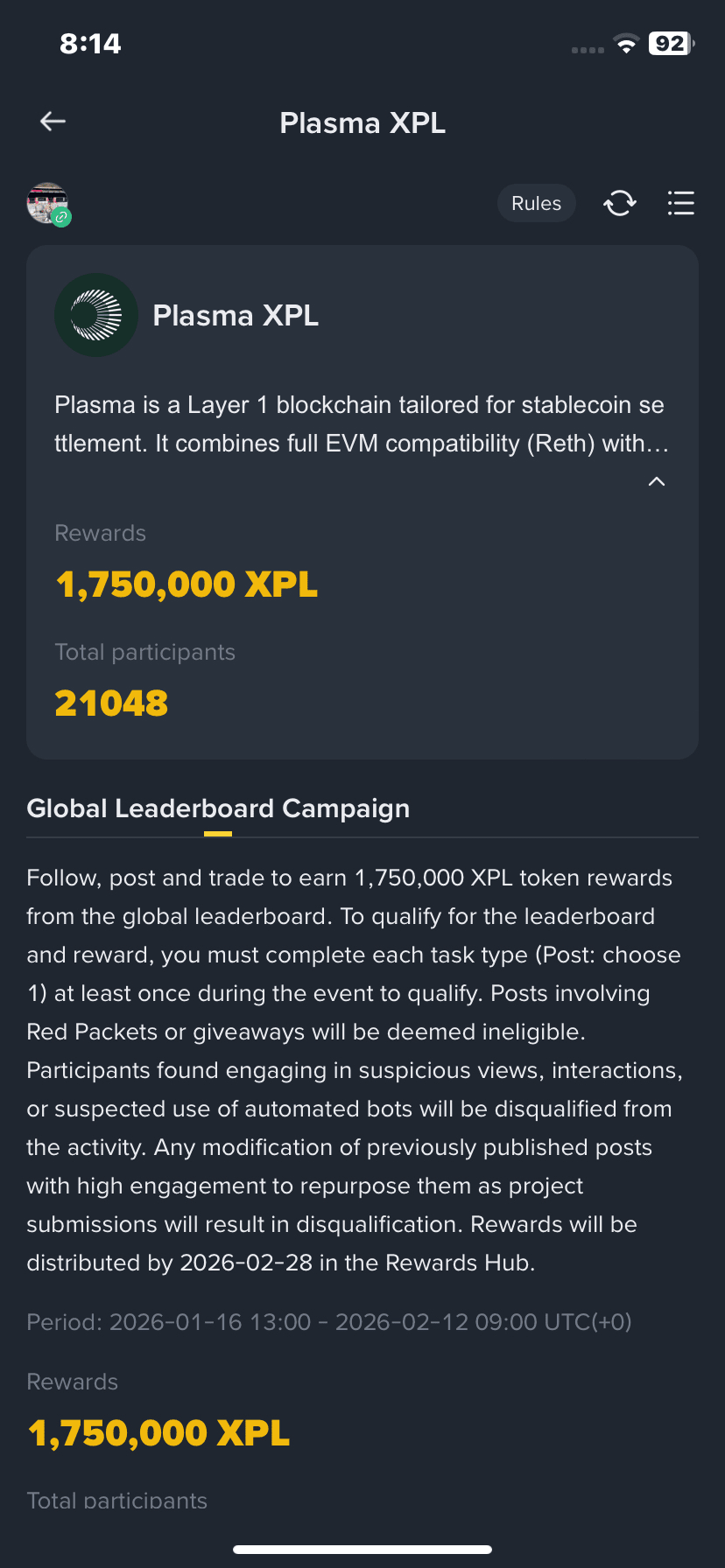 Plasma XPL - Creator Pad Campagna 💡Vinci una parte di 1,750,000 $XPL 💸 montepremiCome partecipare 👇1.Segui @Plasma su Square2.Segui su X3.Crea un breve post o articolo su Square4.Completa la Missione di Commercio🔴 Importante: La missione di commercio può essere completata in spot, convertire o futuro per un valore di $10 #Plasma #CratorPad
