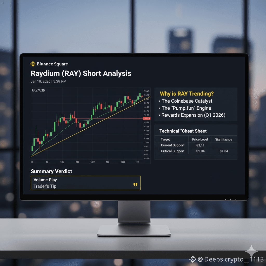 RAY is a "Volume Play." As long as people are trading memecoins on Solana, Raydium makes money. With the new Coinbase listing providing a "safety net" of liquidity, the path to $1.50 looks clear if the Solana ecosystem stays hot.