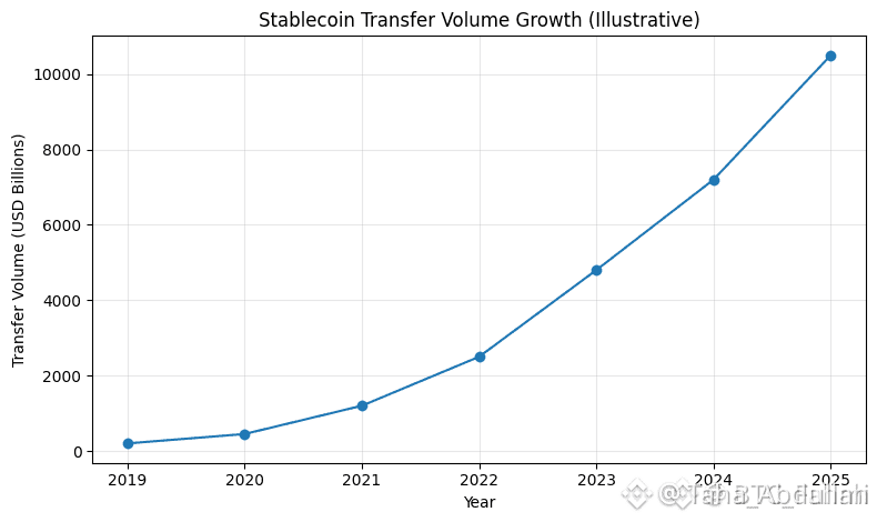لفهم لماذا هذا مهم، عليك أن تنظر إلى وضع التمويل على السلسلة اليوم. تعتمد تقريبًا جميع أنشطة التداول، سيولة DeFi، واستخدام العملات المشفرة عبر الحدود على العملات المستقرة. لا تعتبر عملات USDT و USDC شائعة فحسب، بل هي هيكلية. لكن استخدامها لا يزال محدودًا بالشبكات الأساسية التي تعمل عليها. يهتم التاجر الذي ينقل العملات المستقرة بين البورصات بالسرعة والموثوقية. تهتم الشركات التي تدفع للموردين بالرسوم القابلة للتنبؤ. تهتم شركات المدفوعات بالسرعة النهائية والتدفق المستمر. السلسلة تهم أقل من التجربة، والتجربة اليوم لا تزال غير جيدة بما يكفي لحركة الأموال العالمية الجادة.