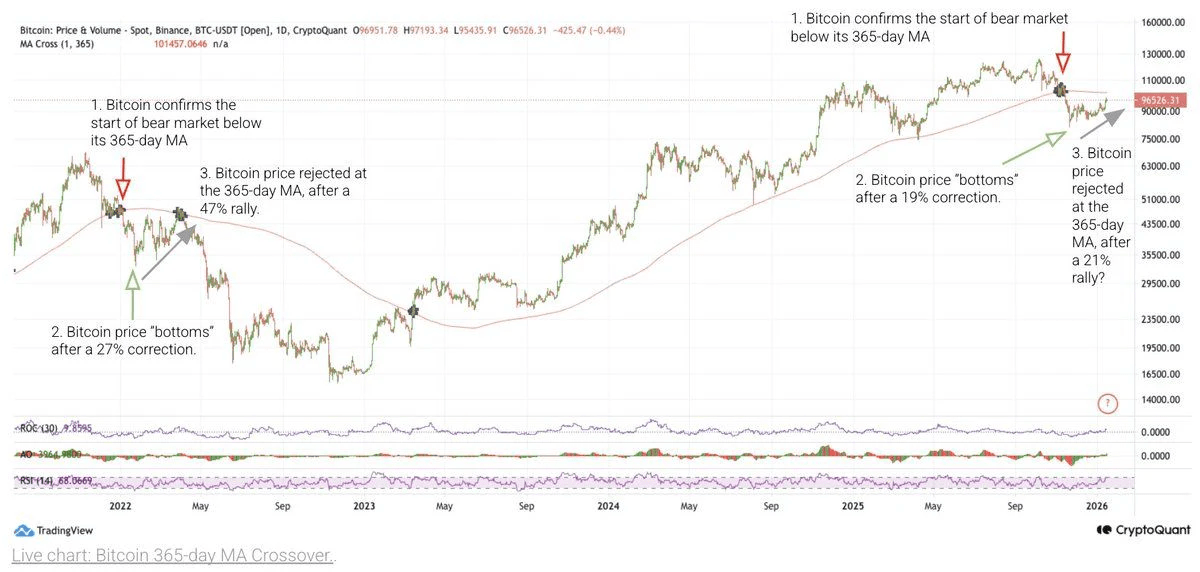 2. Il bitcoin è sotto la media annuale di 365 giorni