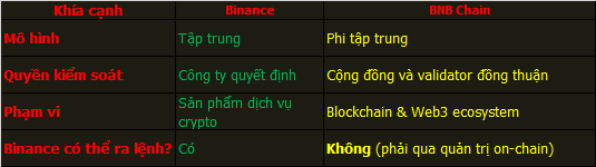 In sintesi: Binance ≠ BNB Chain | piattaforma ≠ blockchain decentralizzata.