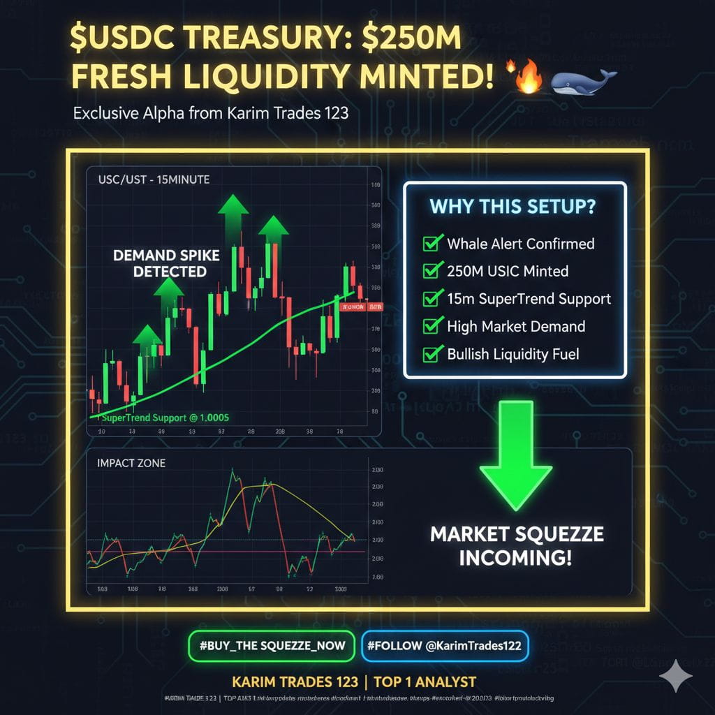The bulls just got their fuel! Whale Alert confirms a massive 250 Million $USDC minting at the Treasury. This isn't just a number—it’s a clear signal of skyrocketing demand and fresh "dry powder" ready to ignite the market!