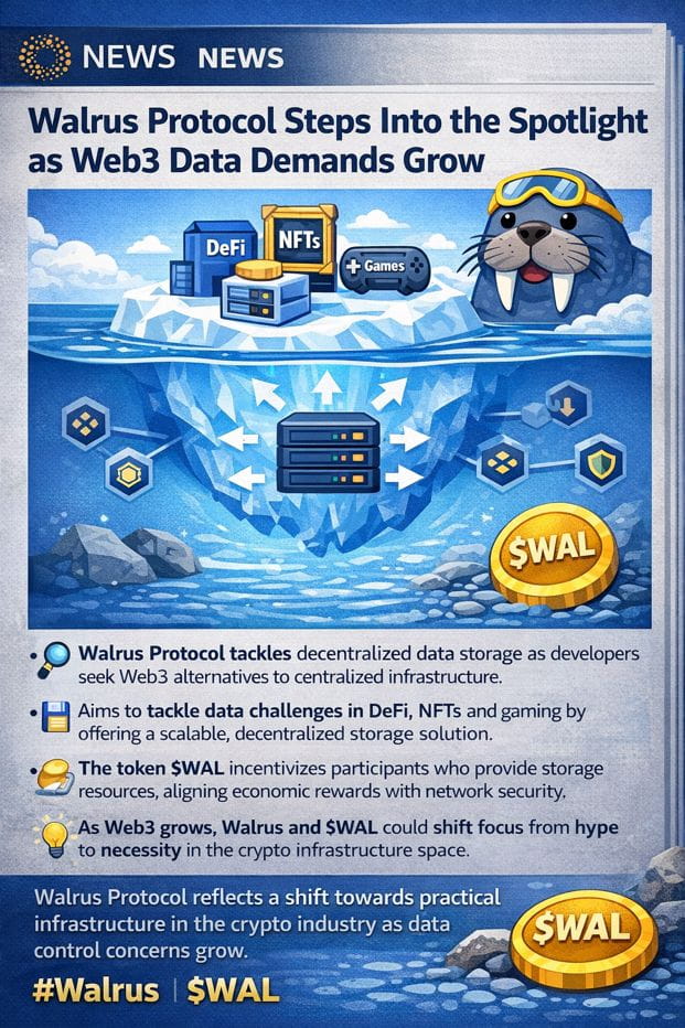 As demand for decentralized infrastructure continues to grow, Walrus Protocol represents a targeted approach to a specific bottleneck in the crypto stack. By prioritizing data availability and developer usability, @Walrus 🦭/acc positions Walrus as a utility-driven asset tied to real network usage. If adoption trends continue, Walrus could become a foundational layer for data-intensive Web3 applications. #walrus