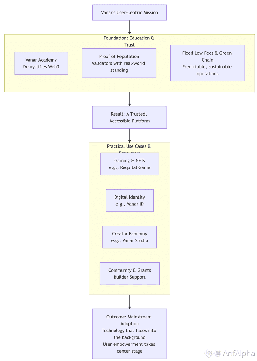 Vanar Chain’s strategy reveals a fundamental truth: for blockchain to achieve its world-changing potential, it must stop being the main character in its own story. By prioritizing user education, designing for trust and predictability, and showcasing tangible utility, Vanar is moving the technology from the fringe to the familiar.