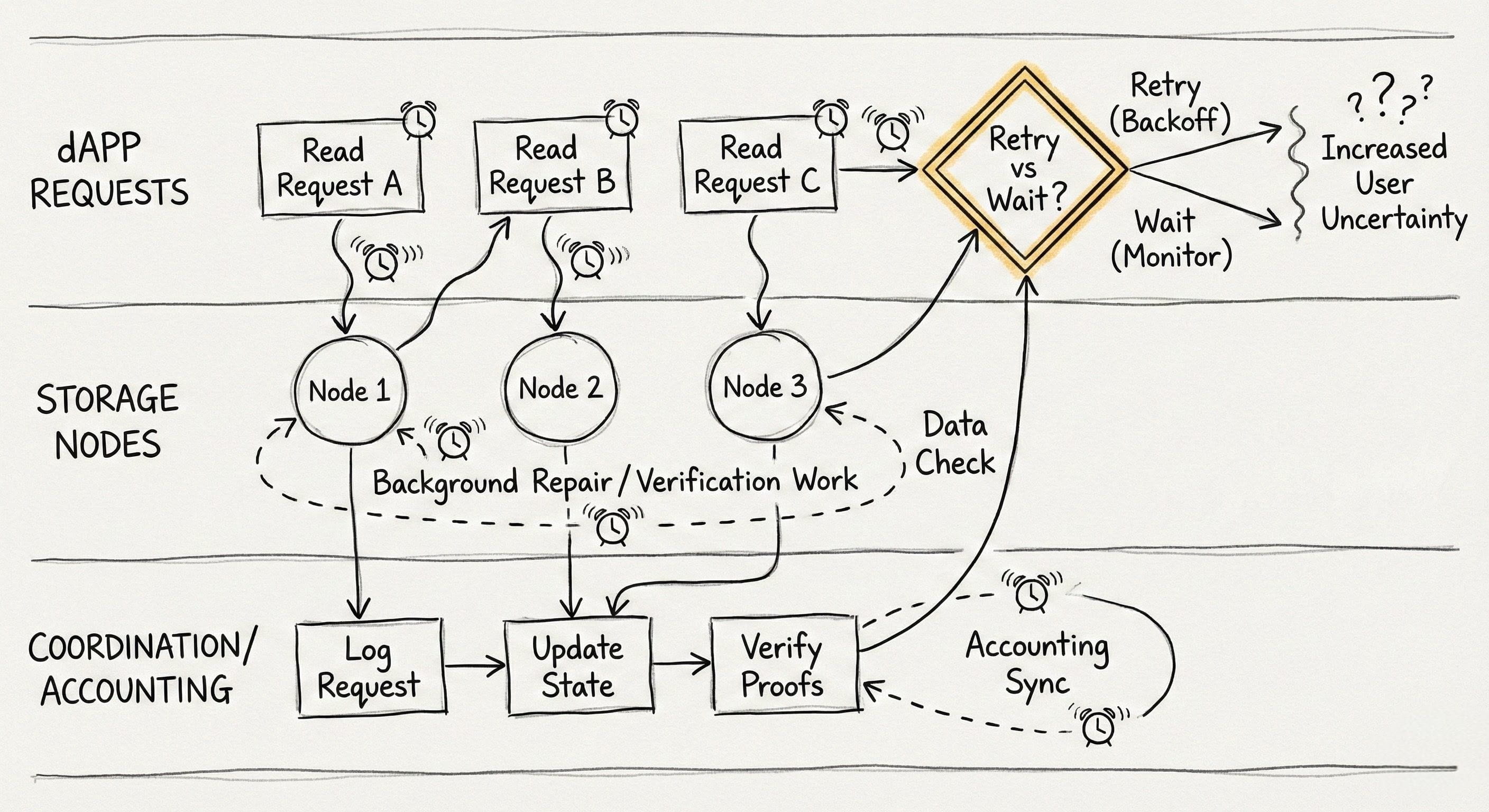 A blob stayed reachable through the kind of day that usually produces excuses. Someone’s node disappears for a while. A request comes in twice. A read arrives right when something else is already moving. And still, no announcement, no “degraded mode” theater, no dramatic pause that lets humans feel involved.