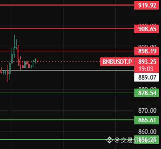 如果今天上不去889上方,那说明小级别反弹没有力度,再次回踩下方支撑位留意878-865-856这几个位置附近!#BNB走势